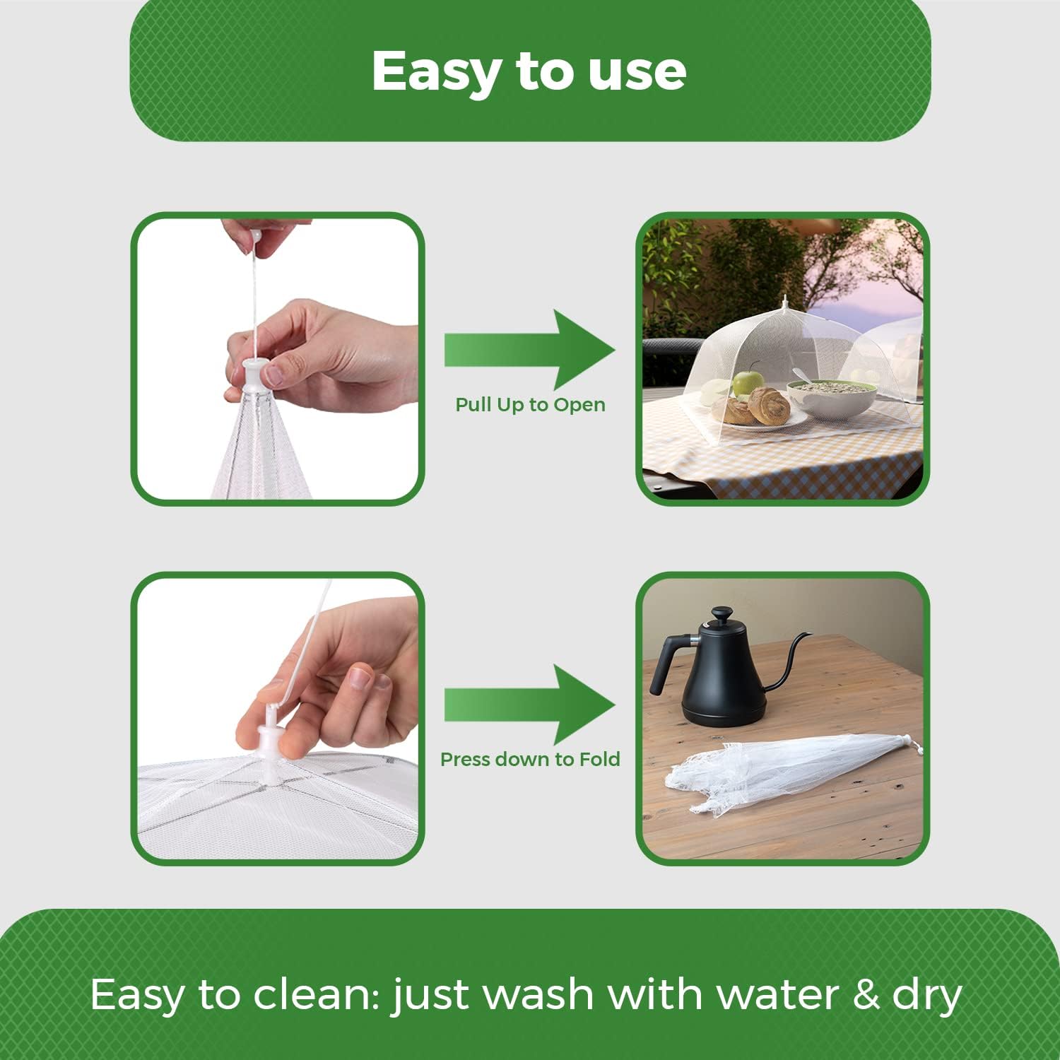 - Easy Storage and Cleaning: These foldable food covers feature a collapsible design for effortless portability and storage, making them ideal for travel. Easily rinse and air dry these food cover net mesh items to maintain their pristine condition for frequent use