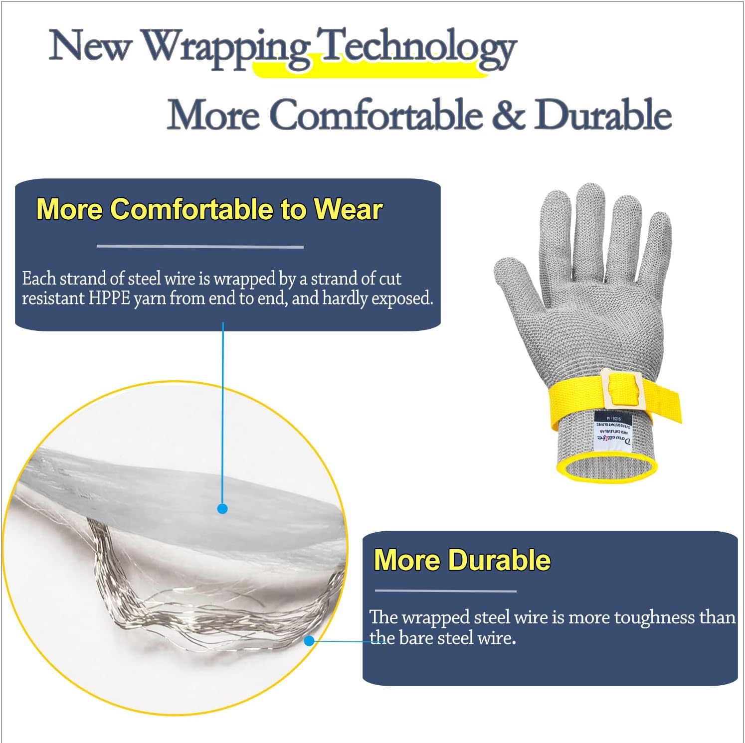 - More comfortable---Compared with traditional steel gloves, this glove better wraps the harder steel wire in the soft fiber ((anti cutting PE and elastic yarn), making this glove feel softer and more comfortable to wear.