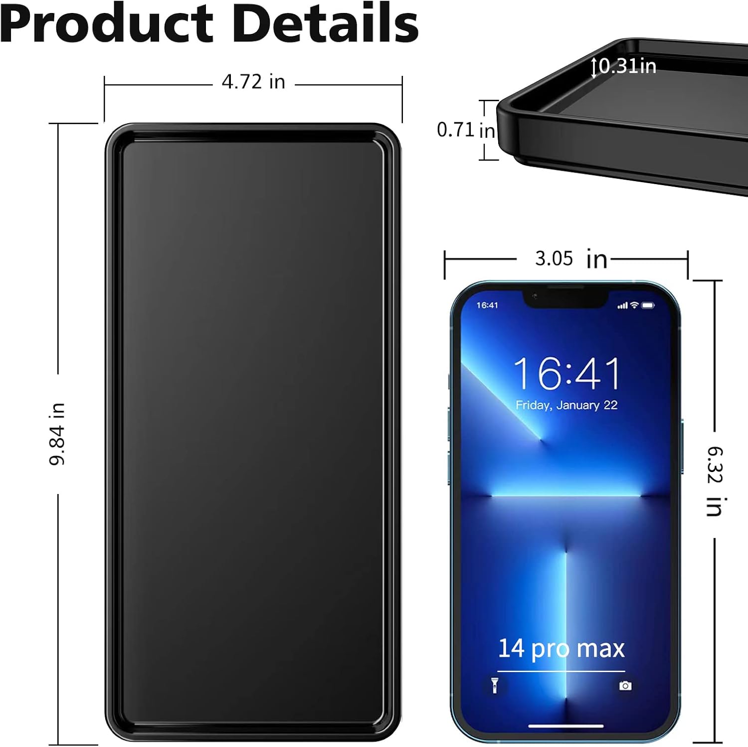 - Product Dimensions : 9.84"L x 4.72"W x 0.71"H