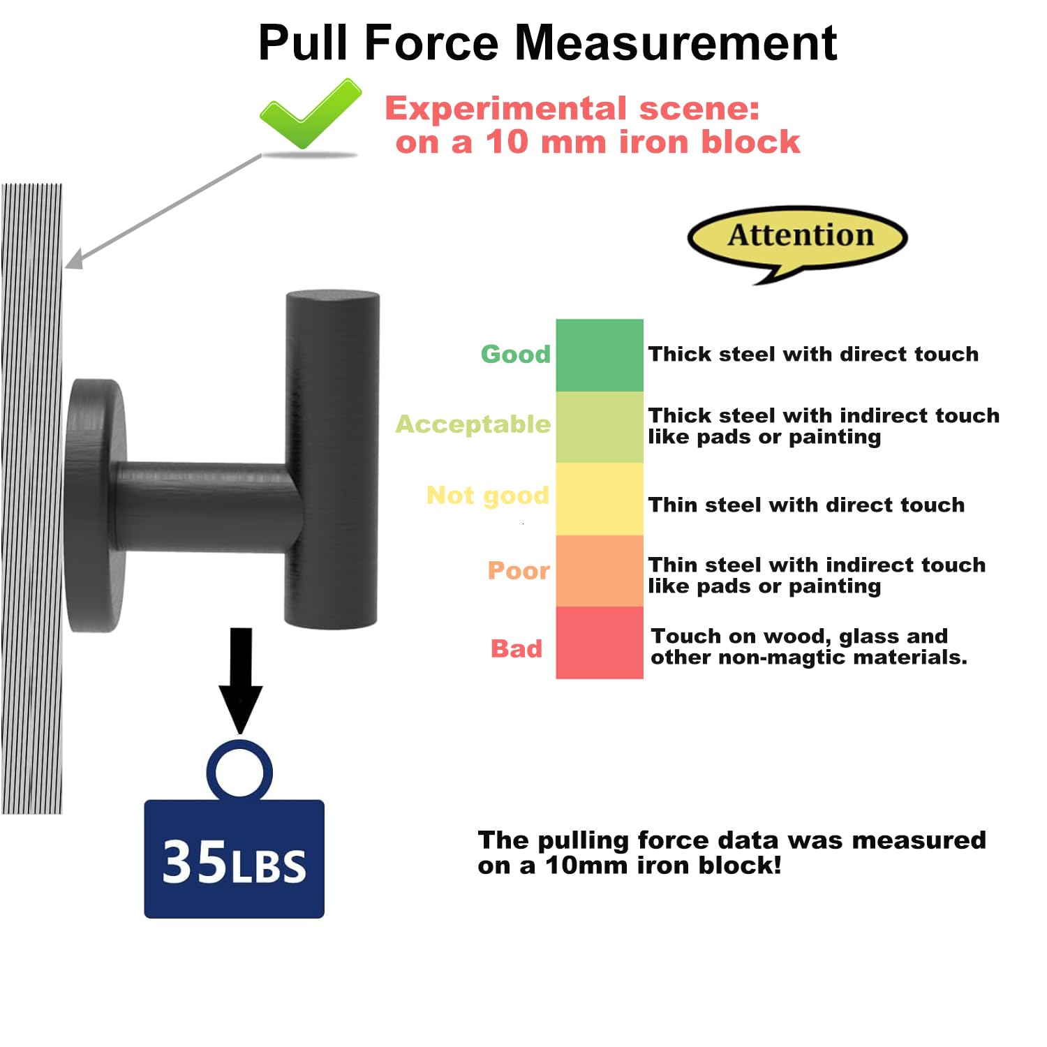 - 【Please Note】Be careful, because the magnetic strength is too strong, please take protective measures when using.Keep the hook out of reach of the children.And due to the powerful magnetism, we suggest to put paper or something else between the magnet and the magnetic surface to protect the surface from scratching.