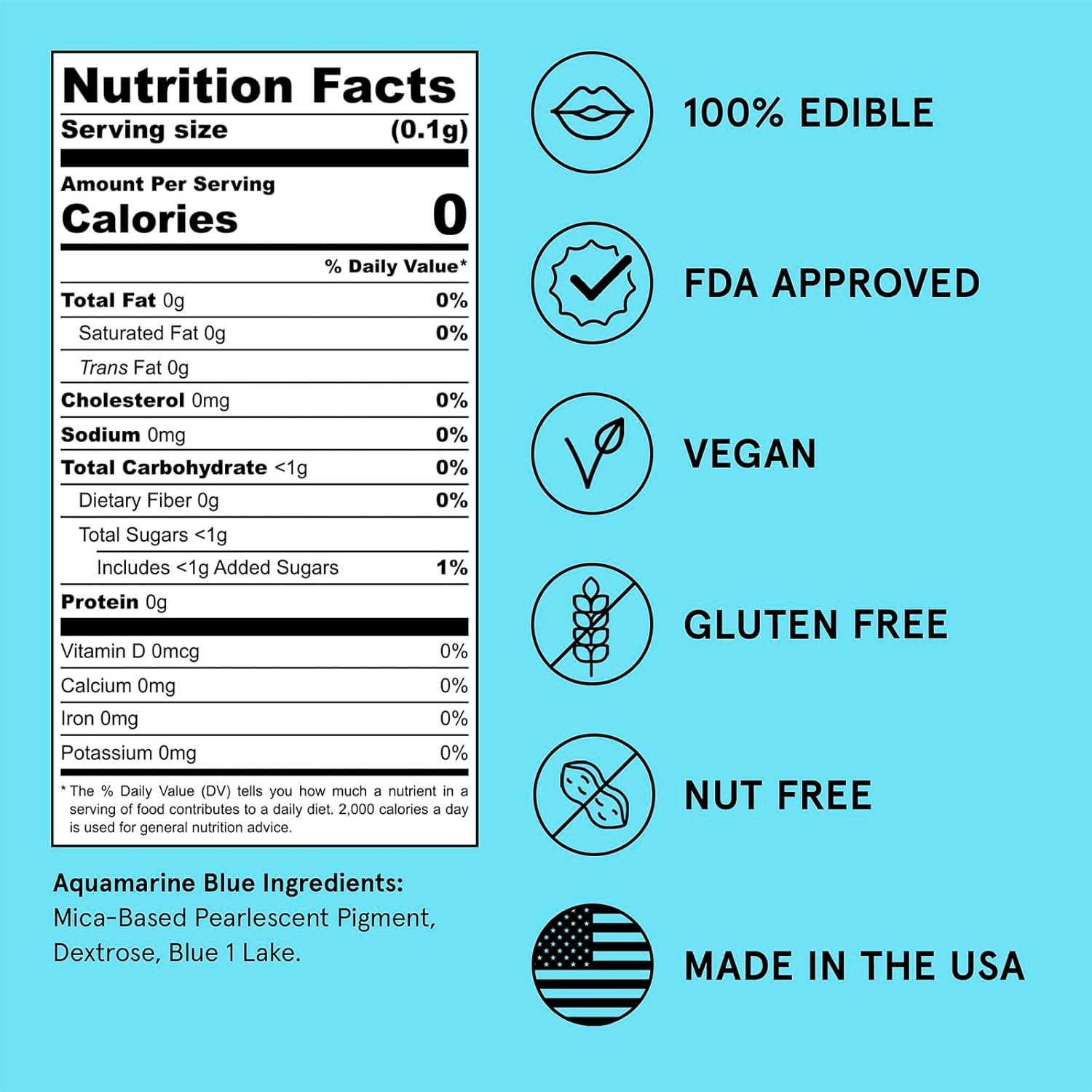Fancy Sprinkles Aquamarine Blue Premium Edible Glitter, 100% Edible Glitter for Sparkling Food & Drinks No Taste or Texture (4gm)