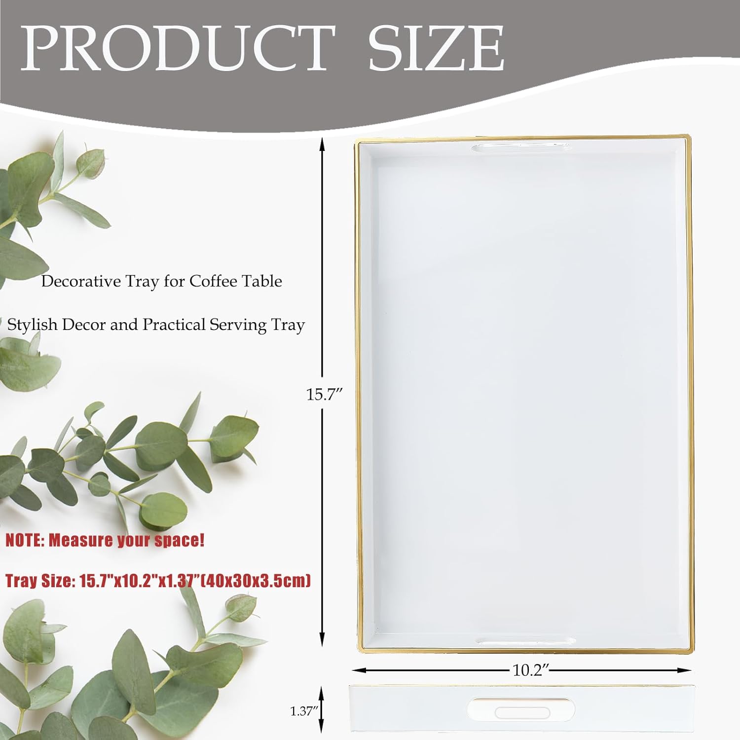 Spsyrine White Decorative Serving Tray with Handles, Elegant Plastic Coffee Table Tray for Ottoman, Living Room, Home Decor 15.6" X 10.2"