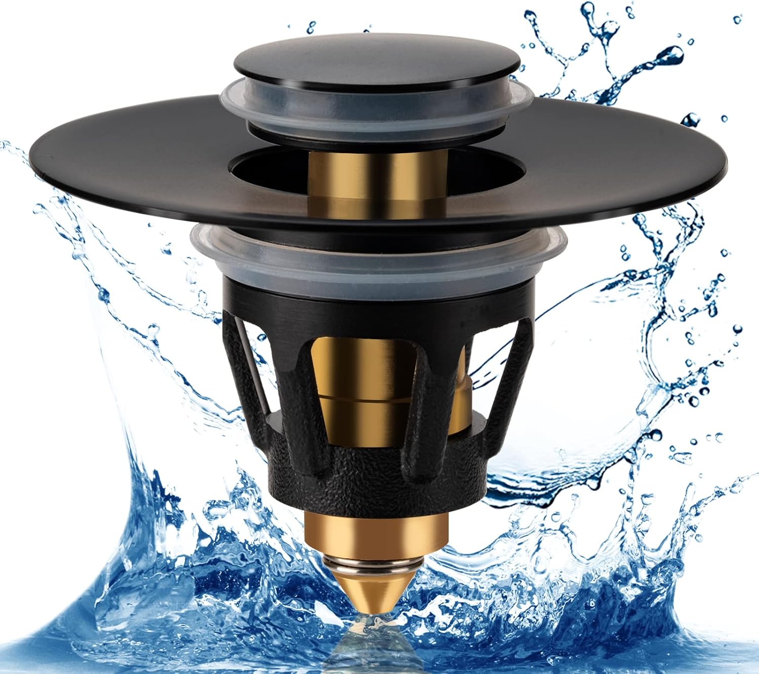 Three colors Bathroom Sink Stopper, 1.1-1.5" Bathroom Sink Strainer, Universal WashBasin Pop Up Drain Stopper, Bounce Core Push Type Sink Plug, Anti-Clogging, Stainless Steel (Matte Black,1PCS)