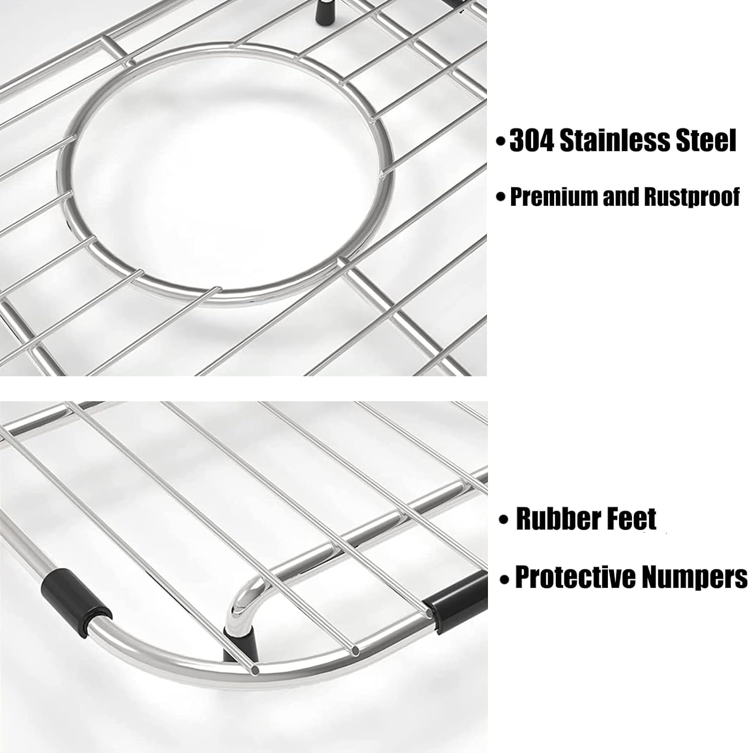 - High-Quality 304 Stainless Steel -- This premium-quality sink protector is made of food-grade 304 stainless steel that is resistant to corrosion and rust. Strong sturdy and durable. The welds are clean and splatter-free and the wire ends are ground smooth. The superior finish looks sleek, modern, and stylish in your kitchen sink.