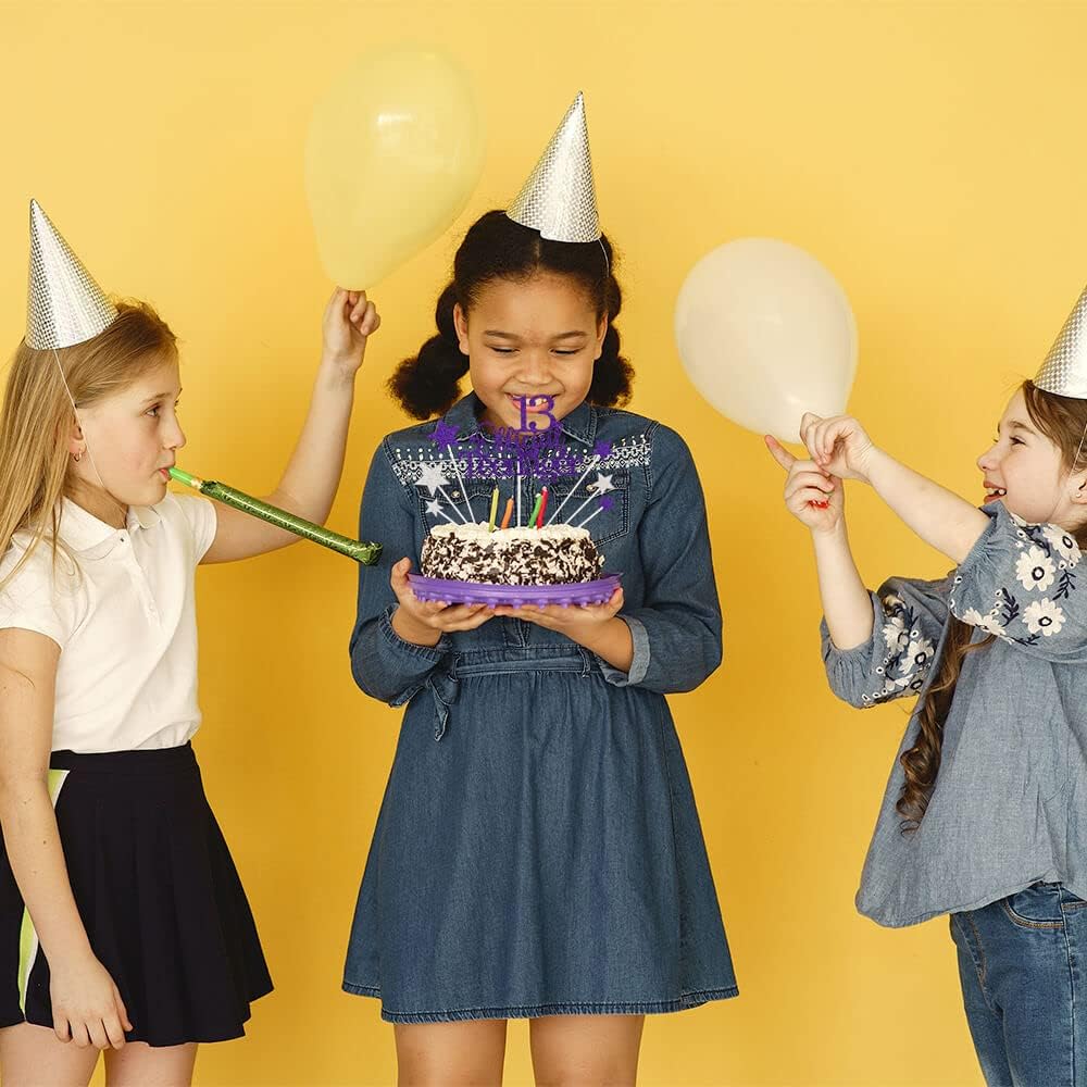 Glittery 13 Ofiicial Teenager Cake Topper with Star,13th Happy Birthday Cake Topper Party Decorations Party Supplies for Boys Girls Purple Silver