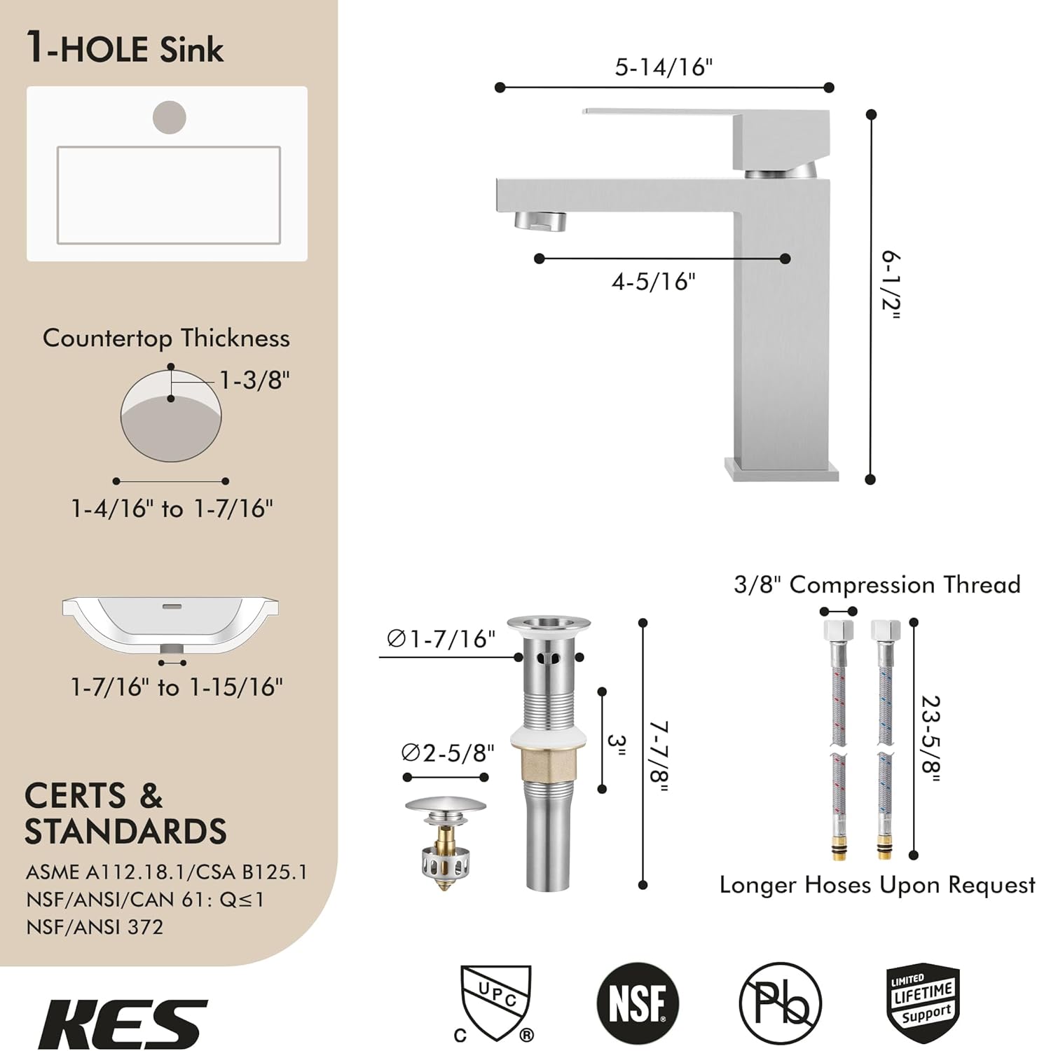 - [ Lead Free NSF Certified ] KES bathroom sink faucet is NSF and cUPC certified, compliant with no-lead requirements and California (CEC) Standards.
