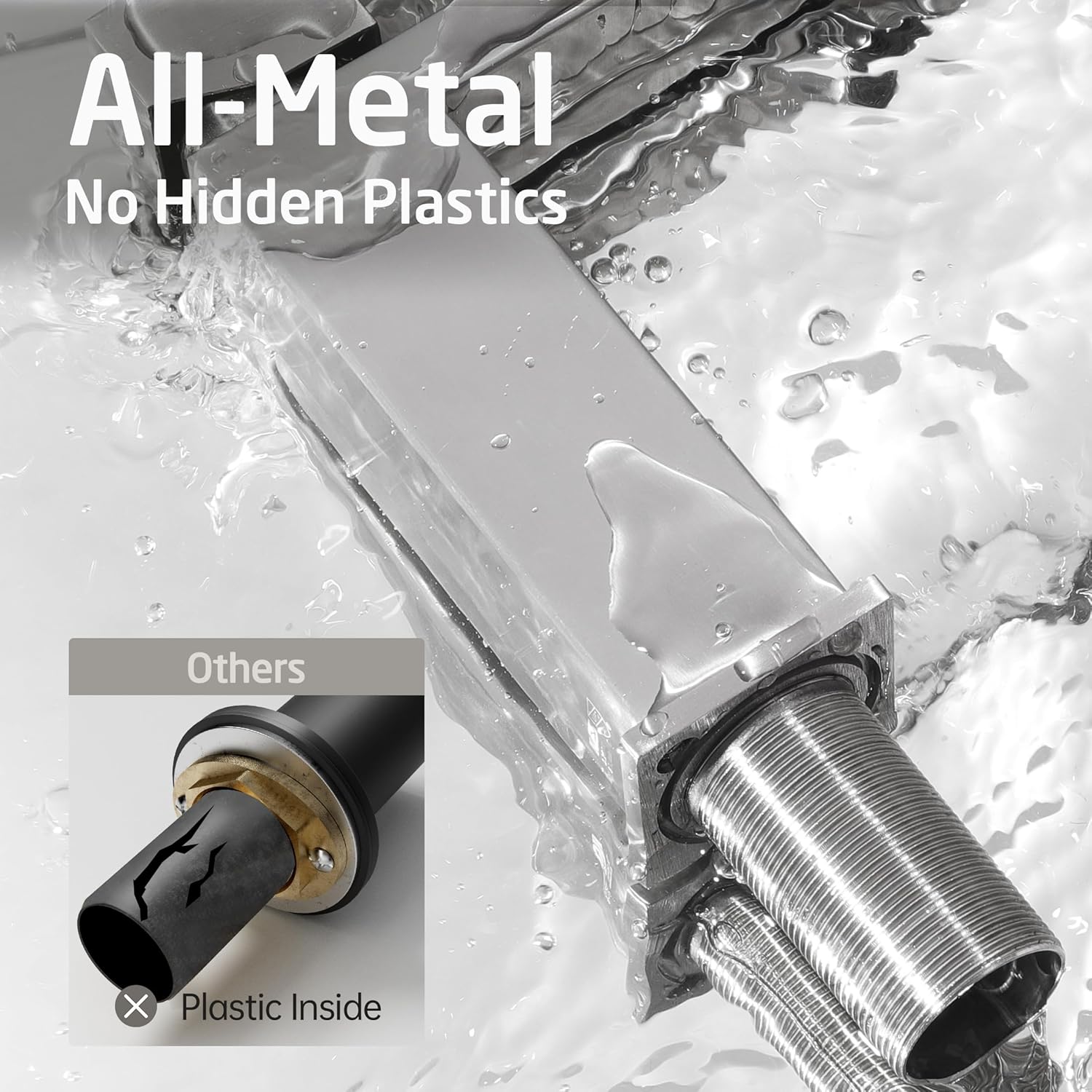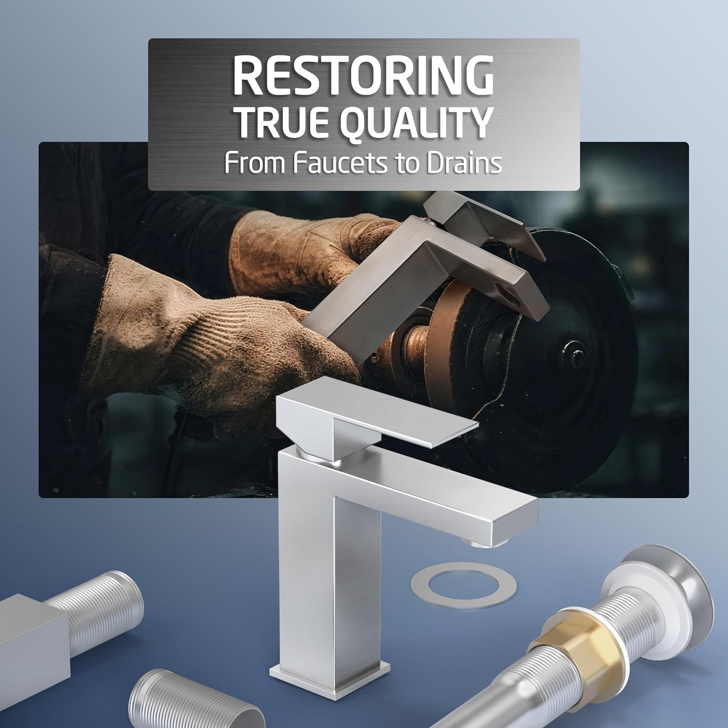 - [ ALL-Metal Pop Up Drain & Water Hoses Included ] Including cUPC hoses and a sink stopper equipped with a premium metal anti-clog drain. No need to spend extra money on buying a better drain to replace the inferior plastic one.