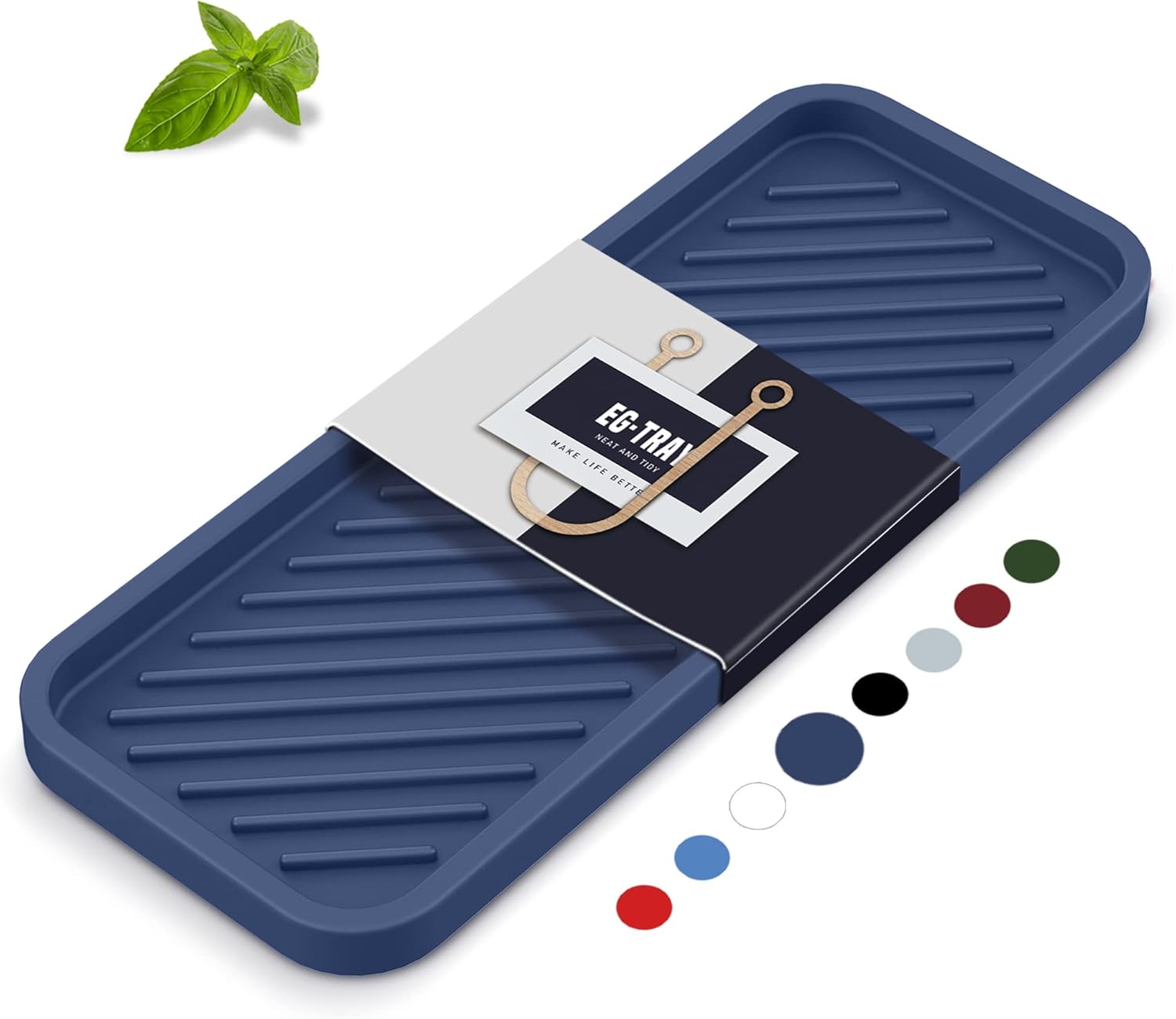 - 【Multiple Uses】Silicone tray is used in kitchen sink, bathroom countertop, living room, windowsill and other places, suitable for placing any suitable size items, such as water cups, soap dispensers, soap, cleaning cloths, small green plants, dishwashing sponges, Stainless Steel Sponges, etc.