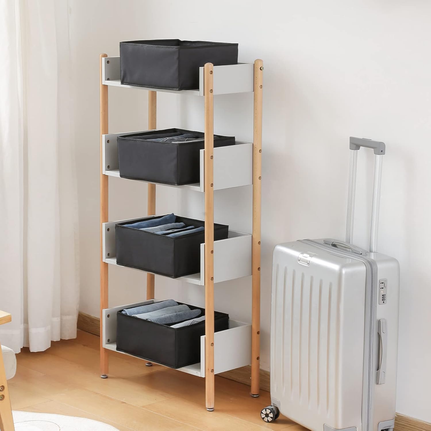 - 5 GRIDS JEANS ORGANIZED: This jeans storage has five compartments with a width of 2.52 inches, which can store your jeans, pants, leggings, T-shirts, dresses, towels, etc. The 5 grids can be used to store your clothes from Monday to Friday, making everything organized.