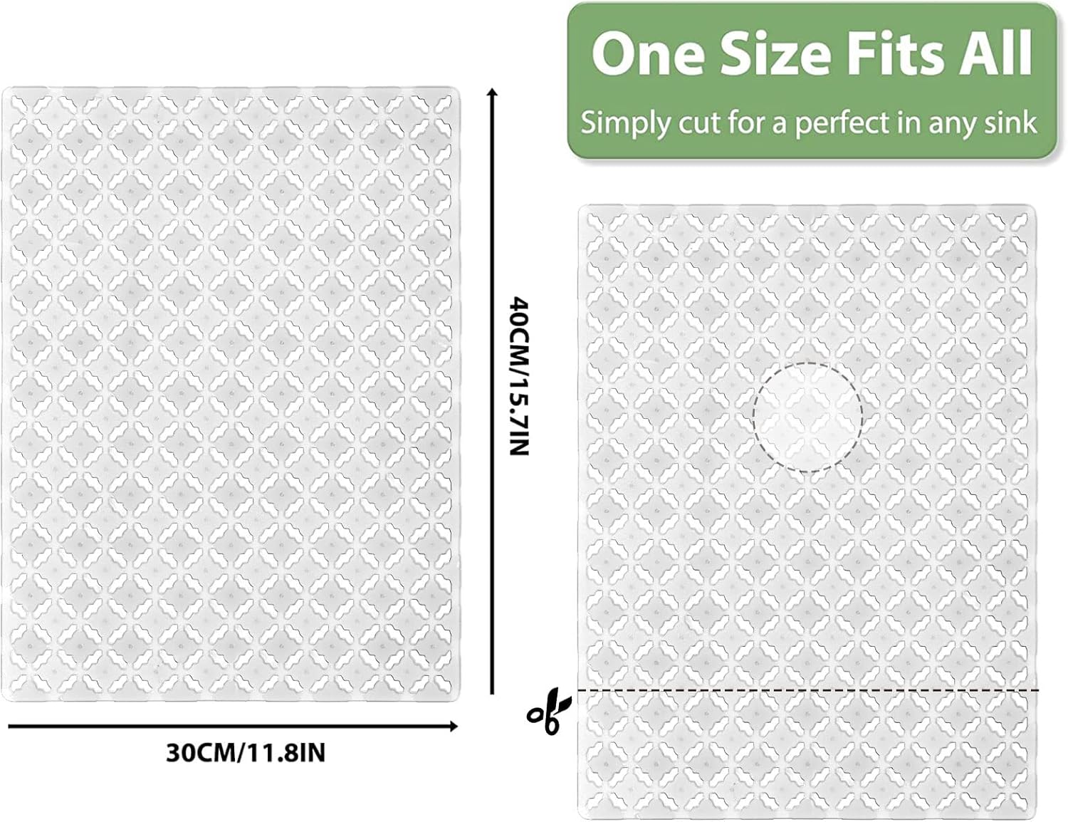 - 【Can Be Customized to Your Kitchen Sink】- The size of sink mat is 11.8x15.7. It can be cut to fit any area you need according to the bottom of the drain stopper. The color perfectly match the decor of stainless steel sink and porcelain sink.