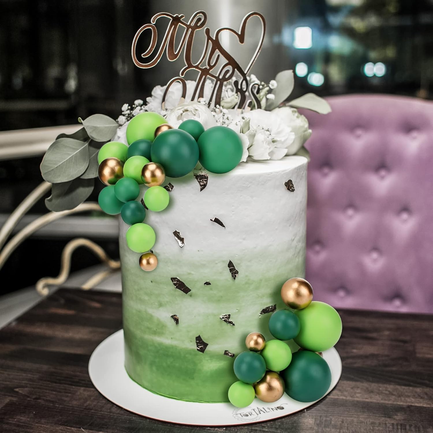 108 Pcs Balls Cake Topper DIY Cupcake Insert Foam Balloons for Cake Baking Wedding Anniversary Birthday Decoration(Assorted Green, Gold,Multi Sizes)