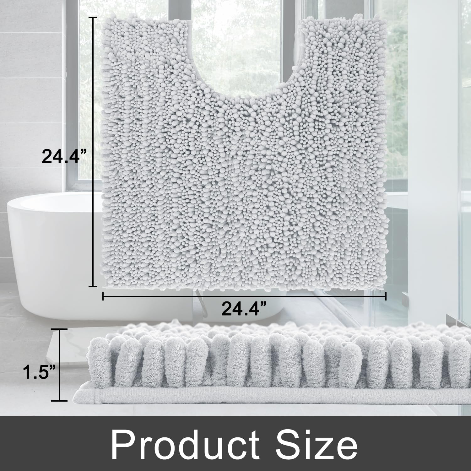 Yimobra Toilet Rug U Shaped Washable 24x20 Inch - Ultra Soft Absorbent Chenille Bath Rugs for Toilet, Quick Dry & Machine Washable, Non Slip Contour Bathroom Mat, Silver