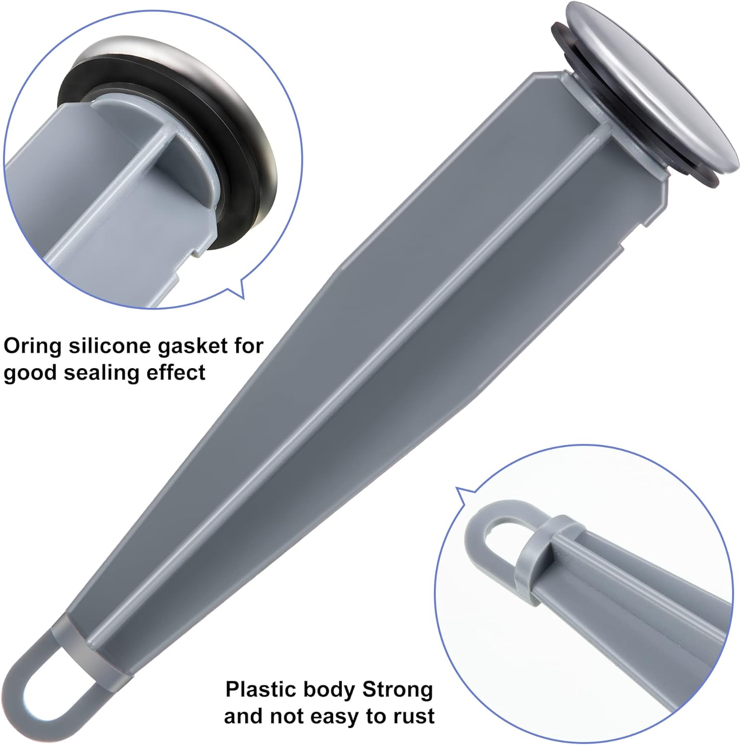 - O Ring Seal: the sink drain stopper is designed with O ring silicone gasket, plug the sink to prevent draining, good sealing effect, and your sink can be drained smoothly by popping the stopper out
