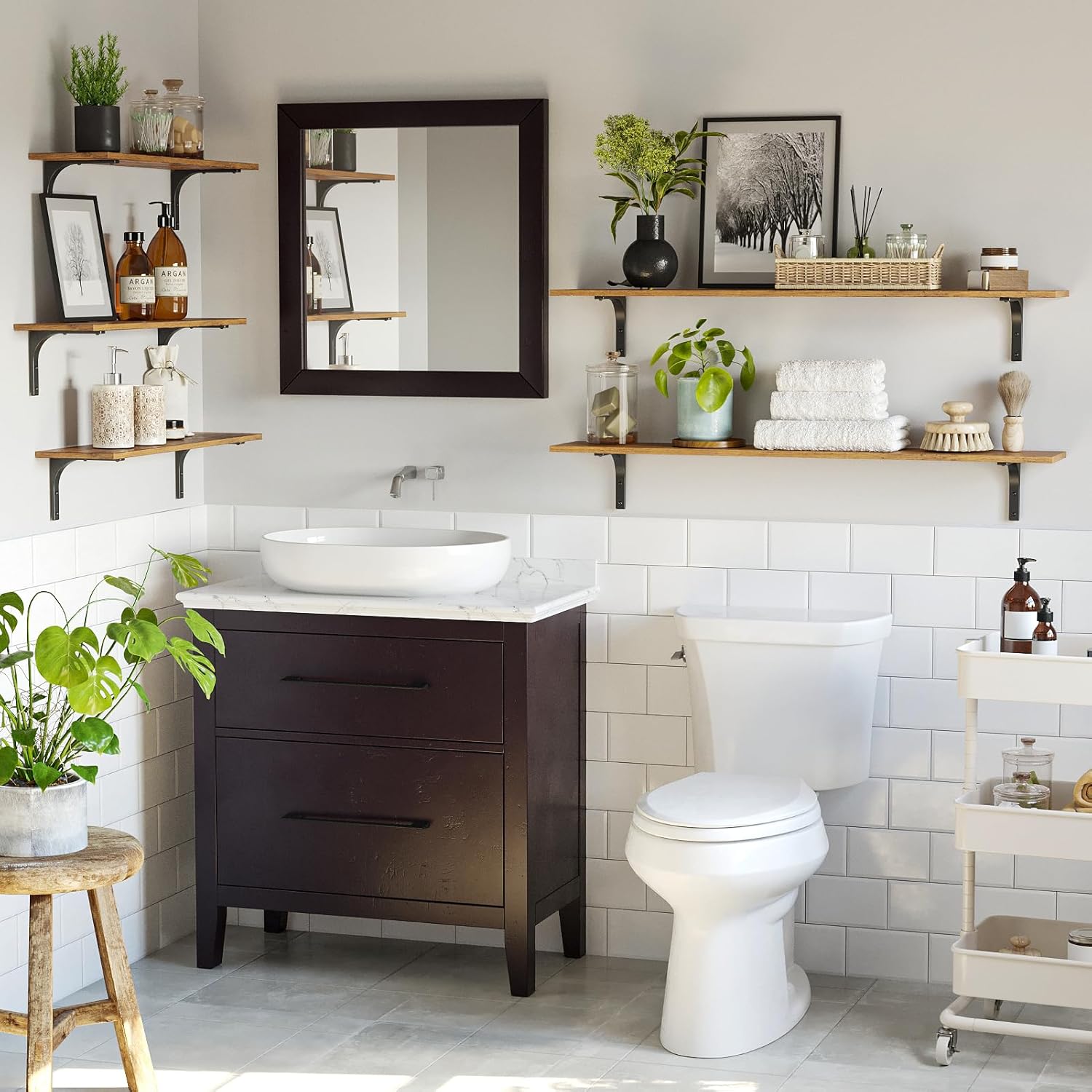 DINZI LVJ Long Wall Shelves, 47.3Inch Wall Mounted Shelves Set of 2, Extra Large Wall Storage Ledges with Sturdy Metal Brackets for Living Room, Bathroom, Bedroom, Kitchen, Rustic Brown