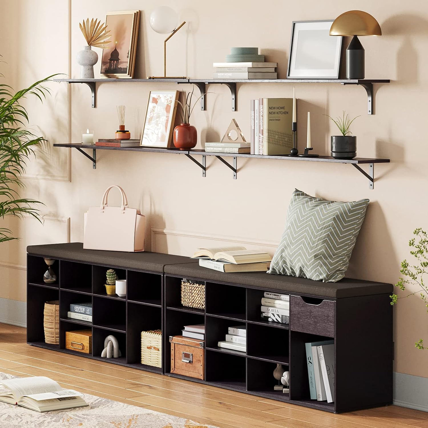 - 【Wide Application】Extra long shelves for wall storage is gospel of small family to enjoy the tranquility of home. Large floating shelves allow you to store books, games, decorations, plants, towels, photos, collectibles etc. Even to be an ideal play area for your cats. Create additional storage in living room, bathroom, bedroom, closet, balcony, study, kitchen, laundry, bar area, pantry and office