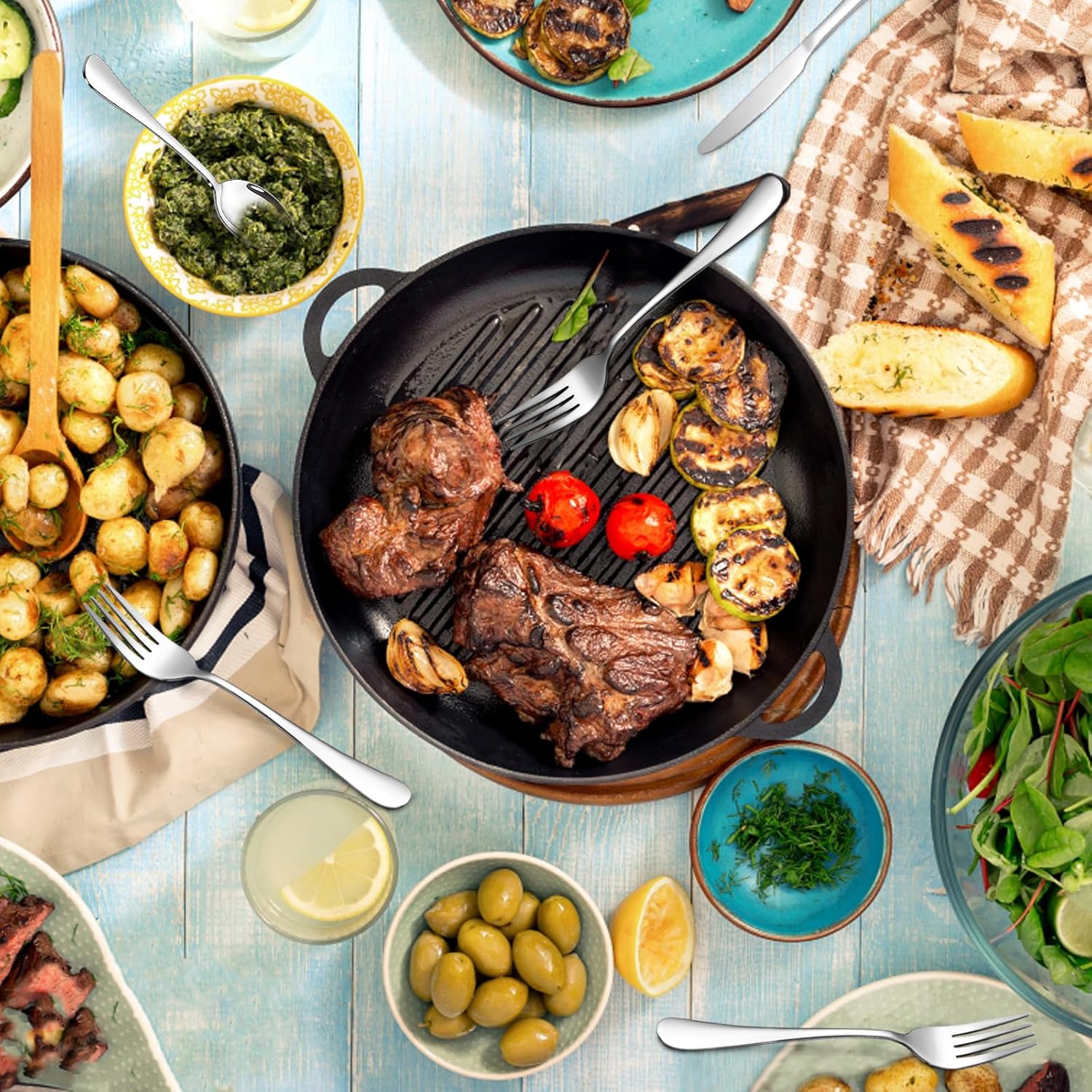- 24 PCS Best Match : This silverware set comes with 12 Dinner Forks, 12 Dinner Knife, essential for families or restaurants.The set is also an irreplaceable dining tool whether it is for daily use or for preparing dinners or parties.