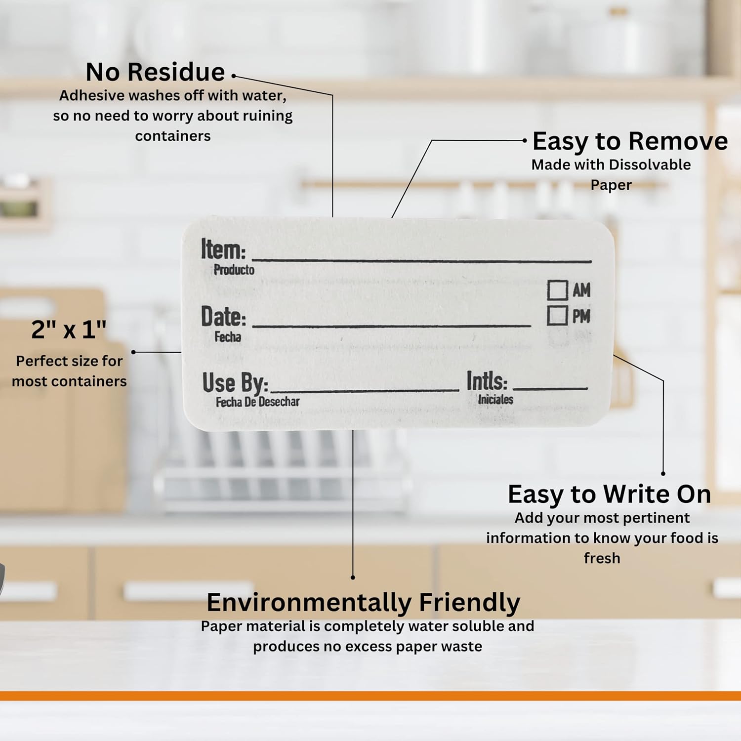 - Dissolvable food labels are made with a writeable material for specific food prep information such as prep date, time, use by, etc; Dissolvable food labels also have English and Spanish making them a great addition to restaurant supplies