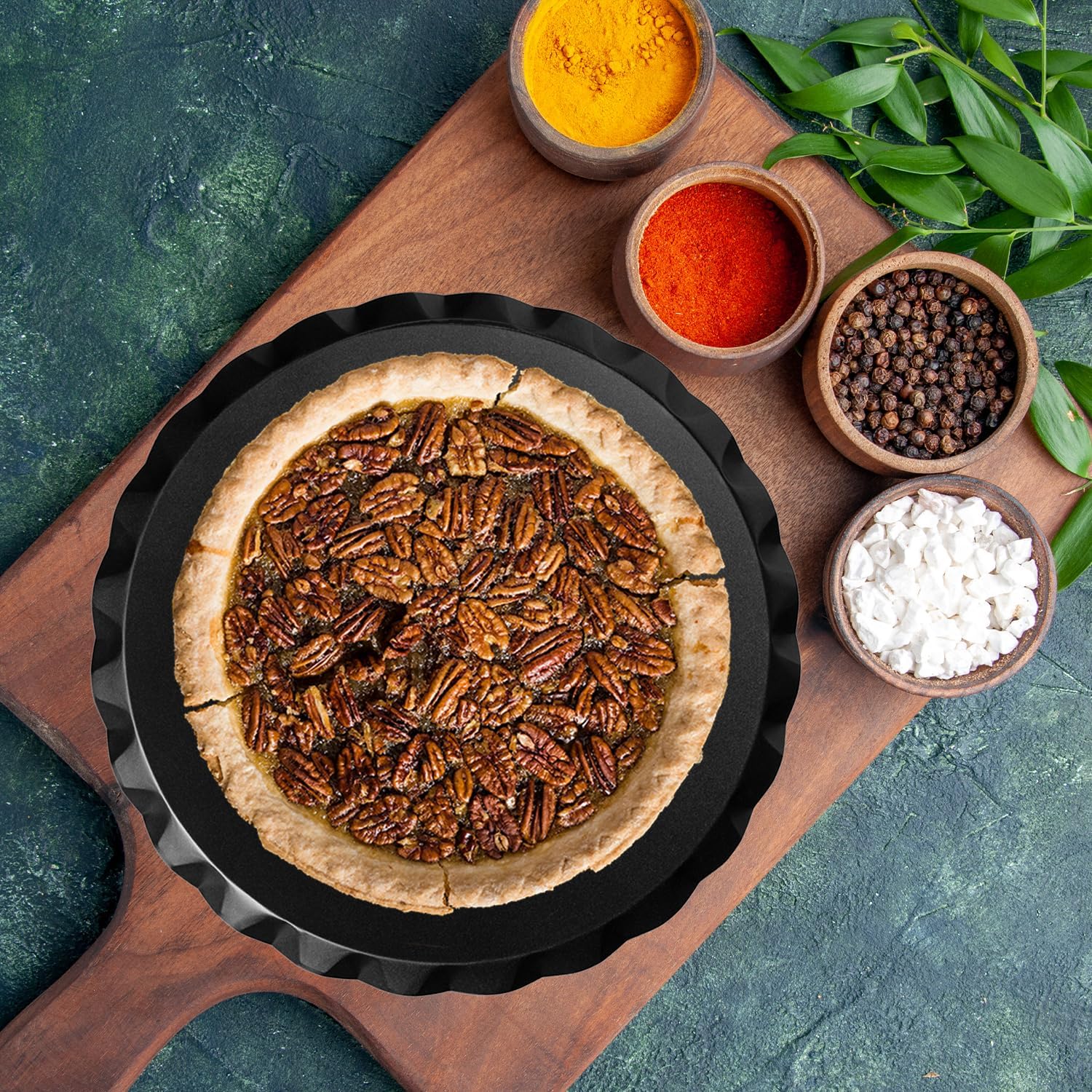 - Non-stick surface for quick, easy cleanup; open center circulates heat for even baking; fluted rim stops drips from overflowing
