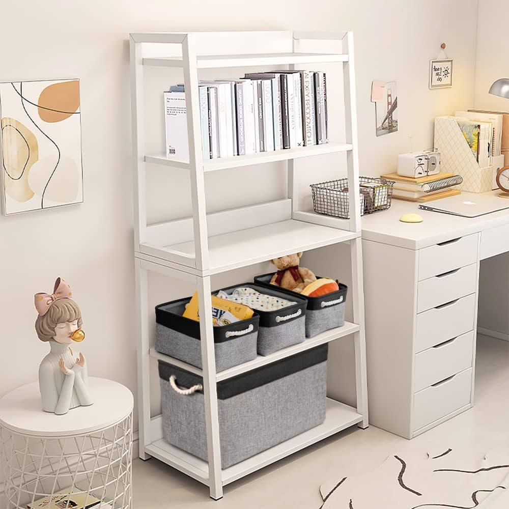 TheWarmHome Storage Basket for Organizing - 14x10x7 inch Medium 3 Pack Collapsible Storage Bin for Shelves with Rope, Fabric Storage Cubes for Organizer Cloth Gift Toy Closet (Black & Grey)