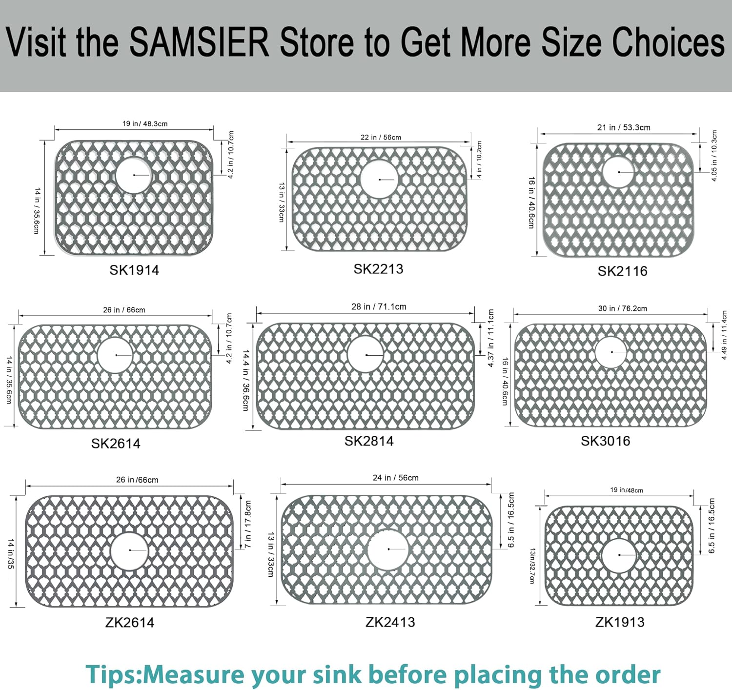 Sink Protectors for Kitchen Sink 13x11 &16x12 &19x14 &21x16 &22x13 &24x13 &26x14 &28x14 &30x16, Large Silicone Sink Mats Grid for Bottom of Farmhouse Sink (21”x16”, Rear Drain)