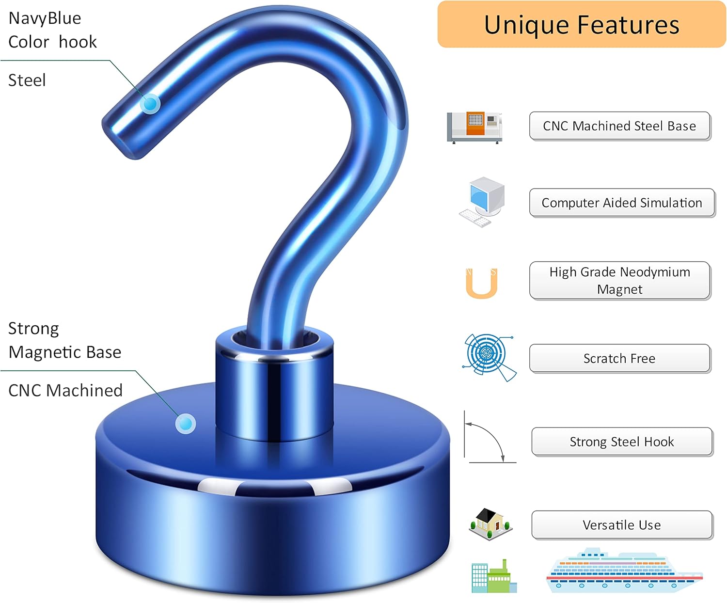 - ✔ VERSATILE USE- Neosmuk’s strong neodymium magnetic hooks were endowed with a strong capability for holding various items wherever there is iron or steel. This magnet hook is a perfect magnetic key holder. You can also hang your tools next to the toolbox with this magnetic hook. Our magnetic hooks are great for grill, pot, cup, utensils, and oven.
