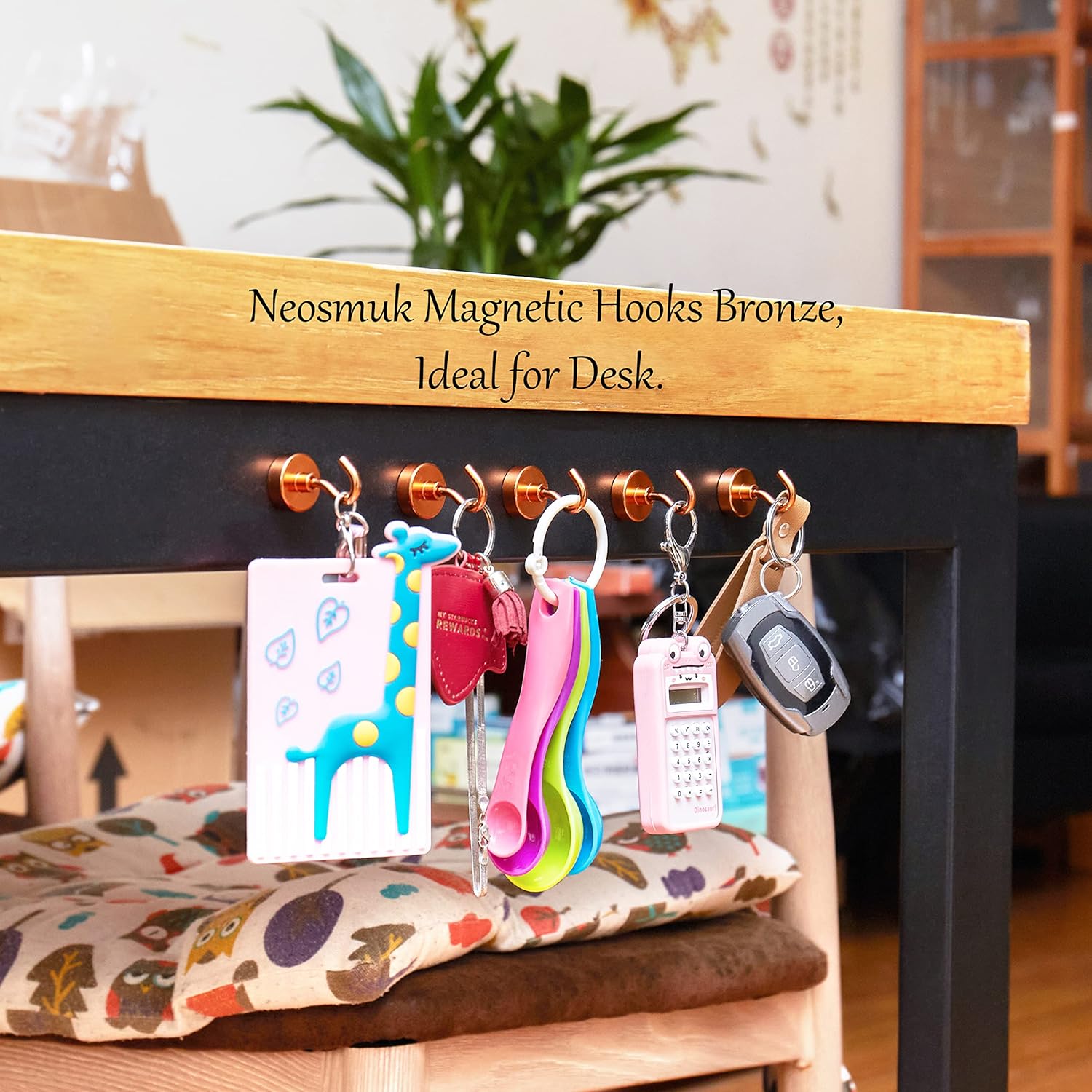 Neosmuk Magnetic Hooks,Heavy Duty Earth Magnets with Hook for Refrigerator, Extra Strong Cruise Hook for Hanging, Magnetic Hanger for Cabins, Grill (Bronze, Pack of 10)