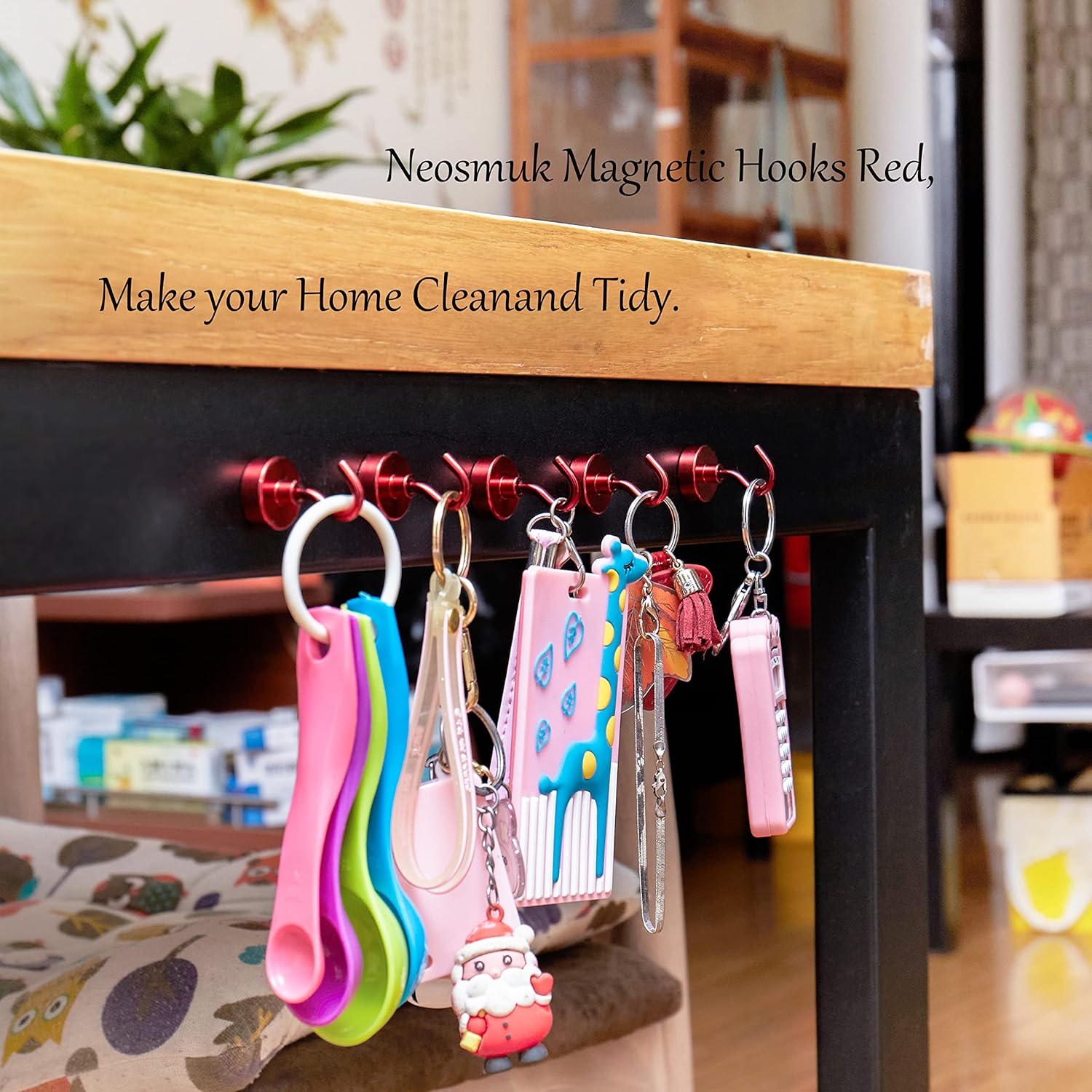 Neosmuk Magnetic Hooks,Heavy Duty Earth Magnets with Hook for Refrigerator, Extra Strong Cruise Hook for Hanging, Magnetic Hanger for Cabins, Grill (Red, Pack of 10)