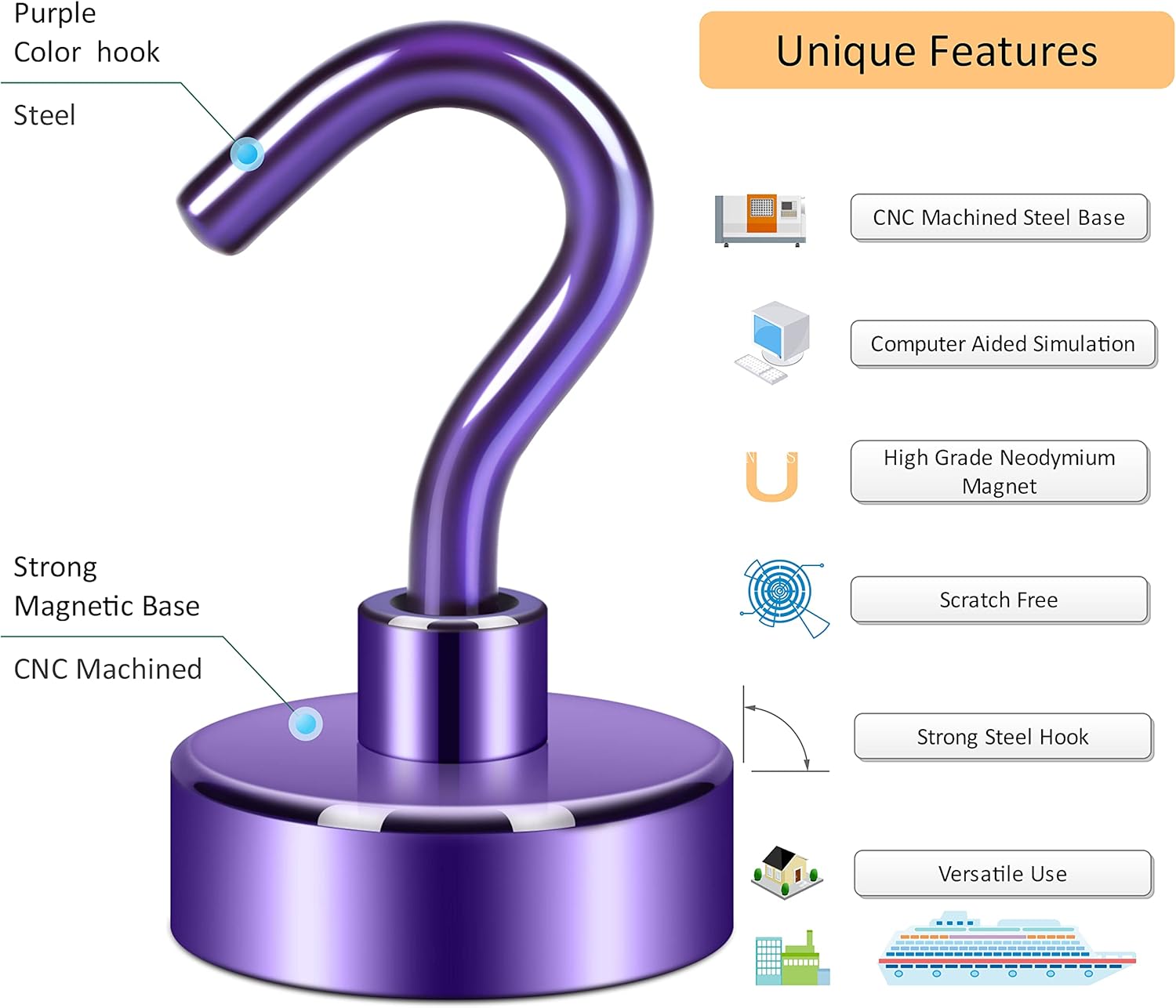 - ✔ SUPER POWERFUL - Amazing strong, sturdy, and heavy-duty metal magnetic hook with a CNC machined steel base, embedded with a high grade latest generation of ‘magnetic king’ i.e. super Nd-Fe-B, this magnetic hook offers more strong pulling force under steel. The magnetic hook is perfect for hanging items on the fridge in the kitchen.