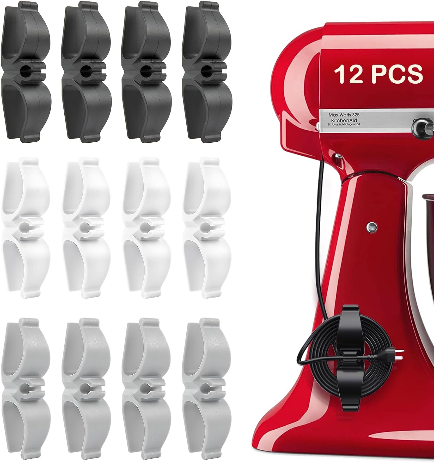Cord Organizer for Appliances, 12 Pack Upgraded Kitchen Appliance Cord Organizer Stick On Appliance Wire Organizer Wire Wrapper for Kitchen Appliances Mixers, Coffee Maker, Pressure Cooker