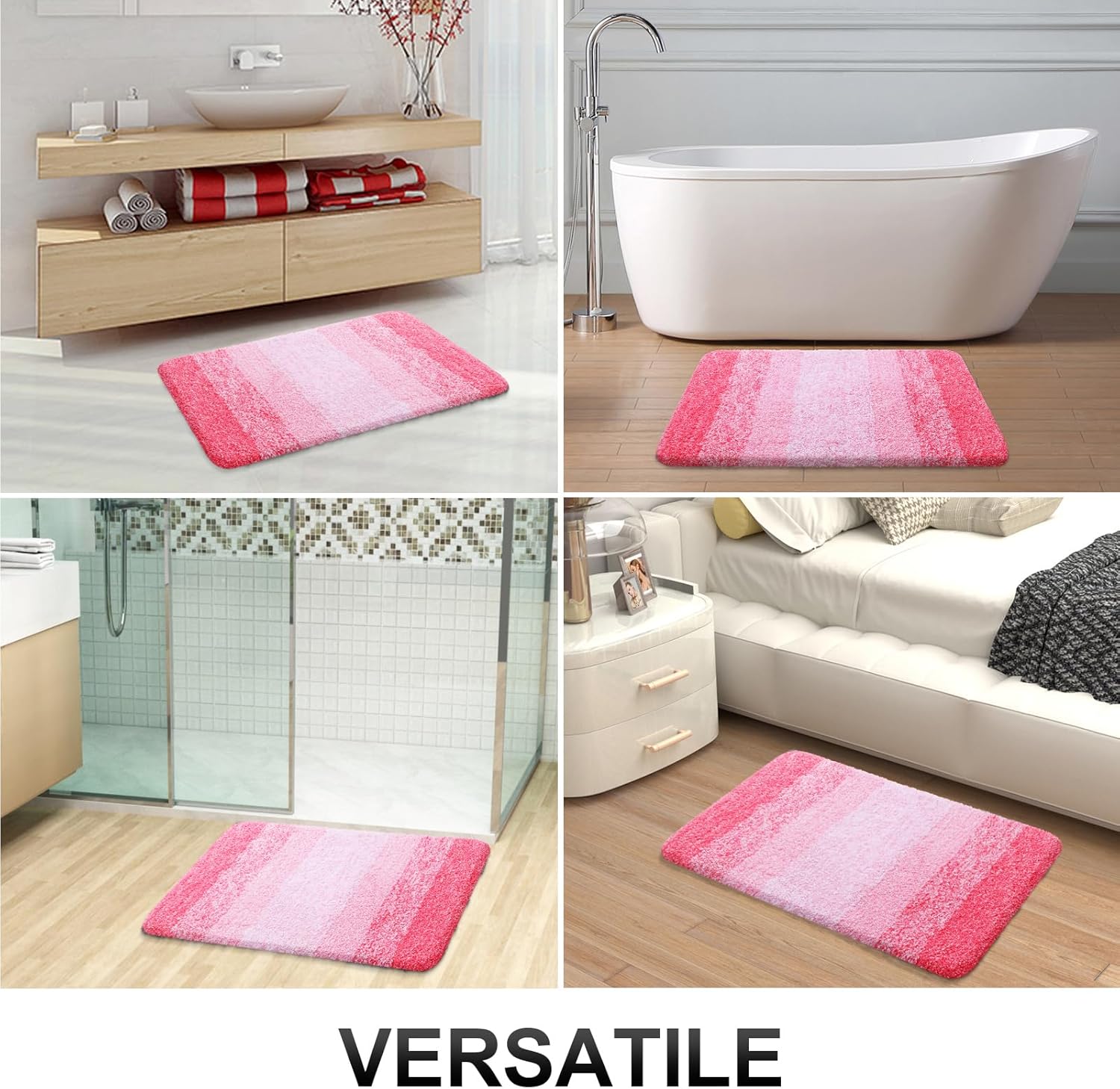 - [Ultra-Absorbent and Quick-Drying] Our bath mat features a soft shaggy microfiber fabric that absorbs water as you step out of the bath, shower, or while getting ready by the sink. The mat's deep pile efficiently traps moisture, allowing it to dry quickly and keep your rug clean and dry.