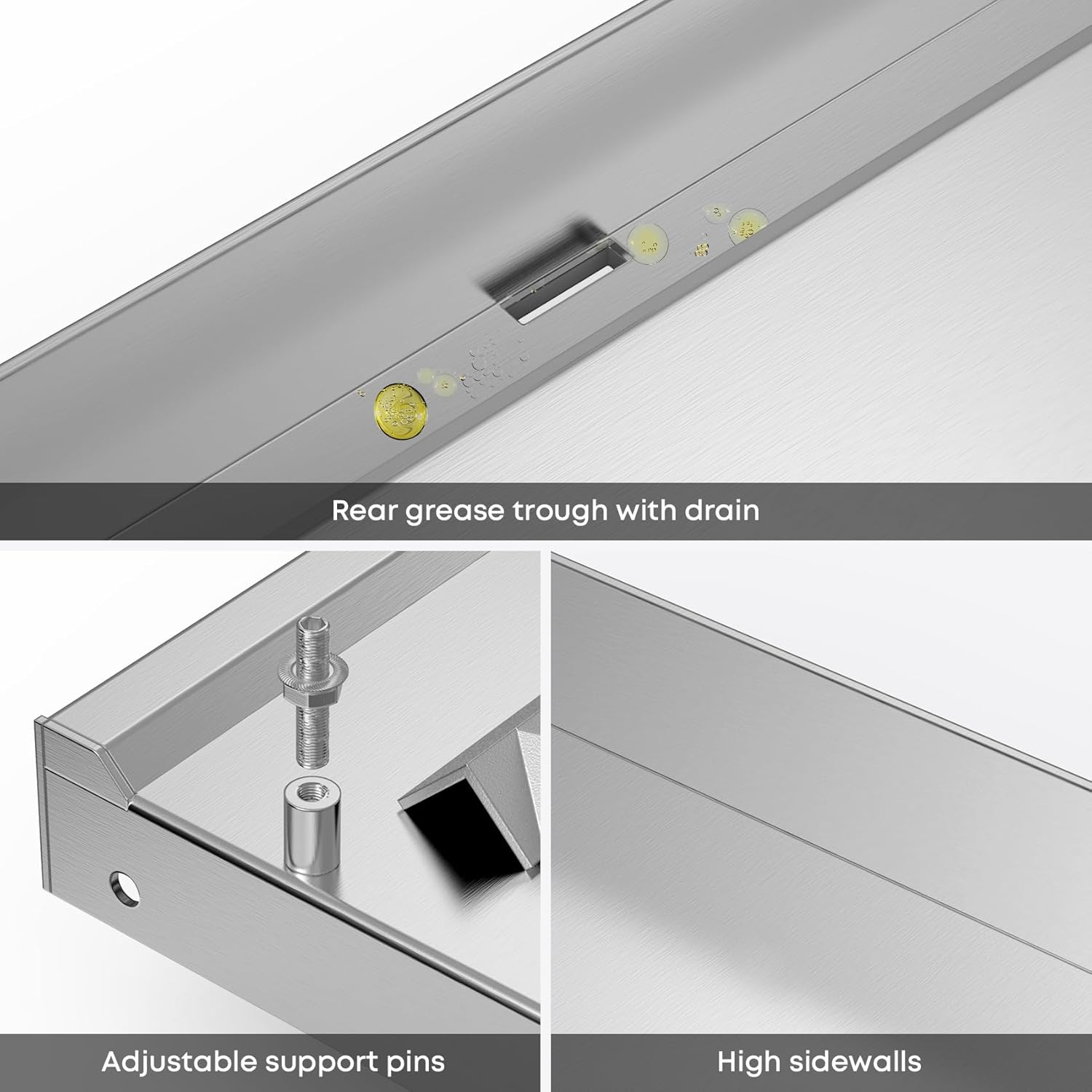 - Rear Grease System: Full-width rear grease trough with drain prevents flare-ups and helps eliminate mess, making cleanup a breeze.