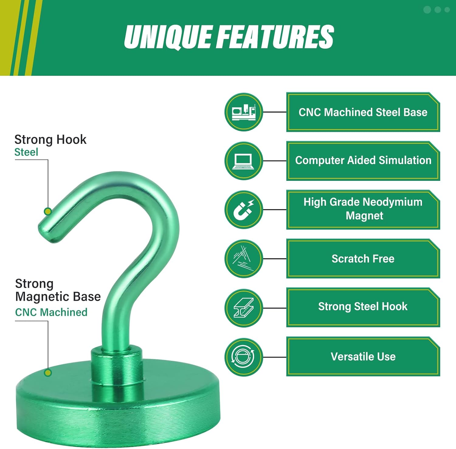 - ✔ VERSATILE USE- Neosmuk’s strong neodymium magnetic hooks were endowed with a strong capability for holding various items wherever there is iron or steel. This magnet hook is a perfect magnetic key holder. You can also hang your tools next to the toolbox with this magnetic hook. Our magnetic hooks are great for grill, pot, cup, utensils, and oven.