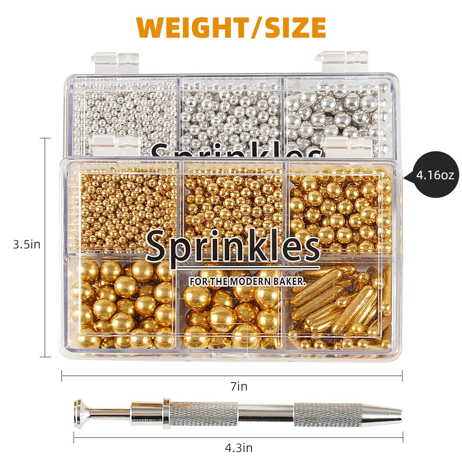 - 【Product List】: You will receive: 1 box of gold cake sprinkles, 118g/4.16oz. 1 box of silver edible pearls, 118g/4.16oz. 1 piece of pearl grabber. Sufficient quantity, convenient and practical, it can meet your daily needs well.