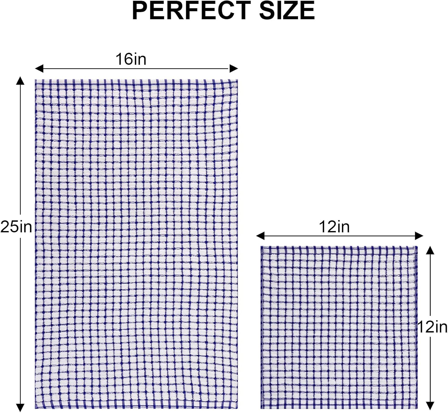 - Value Pack: Collection includes 12 cotton dish towels, measuring 16 x 25 Inches & 12 X 12 Inches, available in a variety of colors to coordinate with any kitchen décor. If you have any questions or suggestions after receiving the product, please contact us, our customer service team will reply within 24h