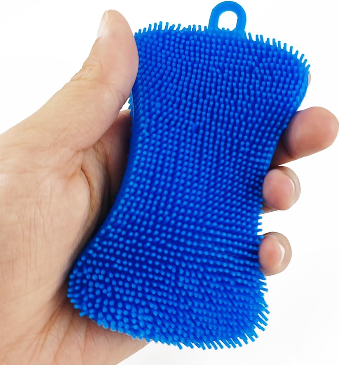 - Size: 4.92” x 2.76”. All silicone dish sponges from the set have a small hook on one side, you can hang it in a visible place when not in use, their bright colors will pop up in your eyes, so you don’t have to worry about finding them; They are also easy to store and dry fast without taking up too much space.