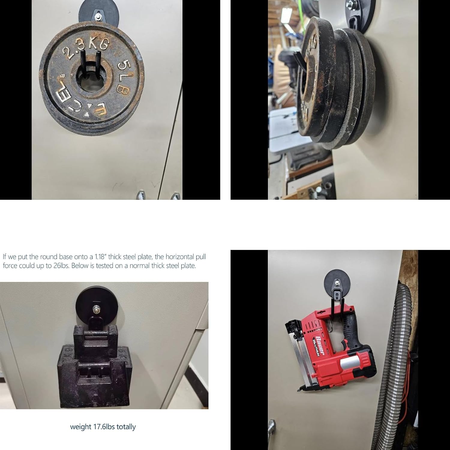 - 🧲[Heavy Duty]: Each 3.46-inch magnet base comes with 12 super-strong rare earth magnets. In our tests on 1.18-inch steel plates, their vertical pull force can up to 130lbs and horizontal pull force could be 26lbs.