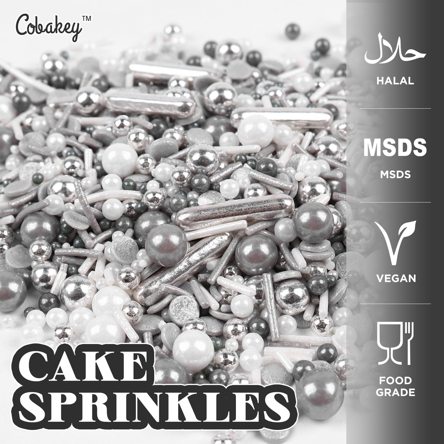 - Get Festive with Your Baking: Gray & Silver Cake Sprinkles are great for holiday baking and decorating. To match any party theme, Decorate for Birthdays, Weddings, Girls' Parties, Halloween, Christmas, New Year's, Holiday Treats and More!