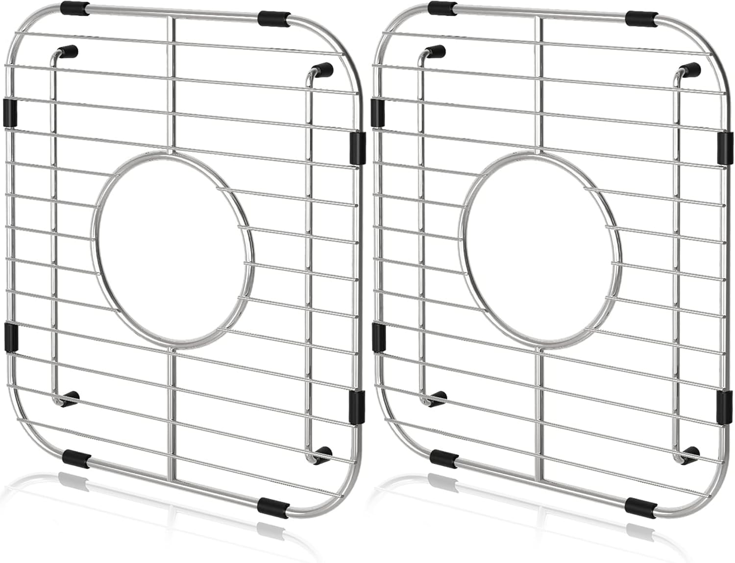 Orgneas Sink Protectors for Kitchen Sink, Universal Double Bowl Sink Bottom Grid 12.5"x10.5"x1.25", 304 Premium Stainless Steel Kitchen Sink Protector Grid Sink Grate Rack Centered Drain 2 Packs