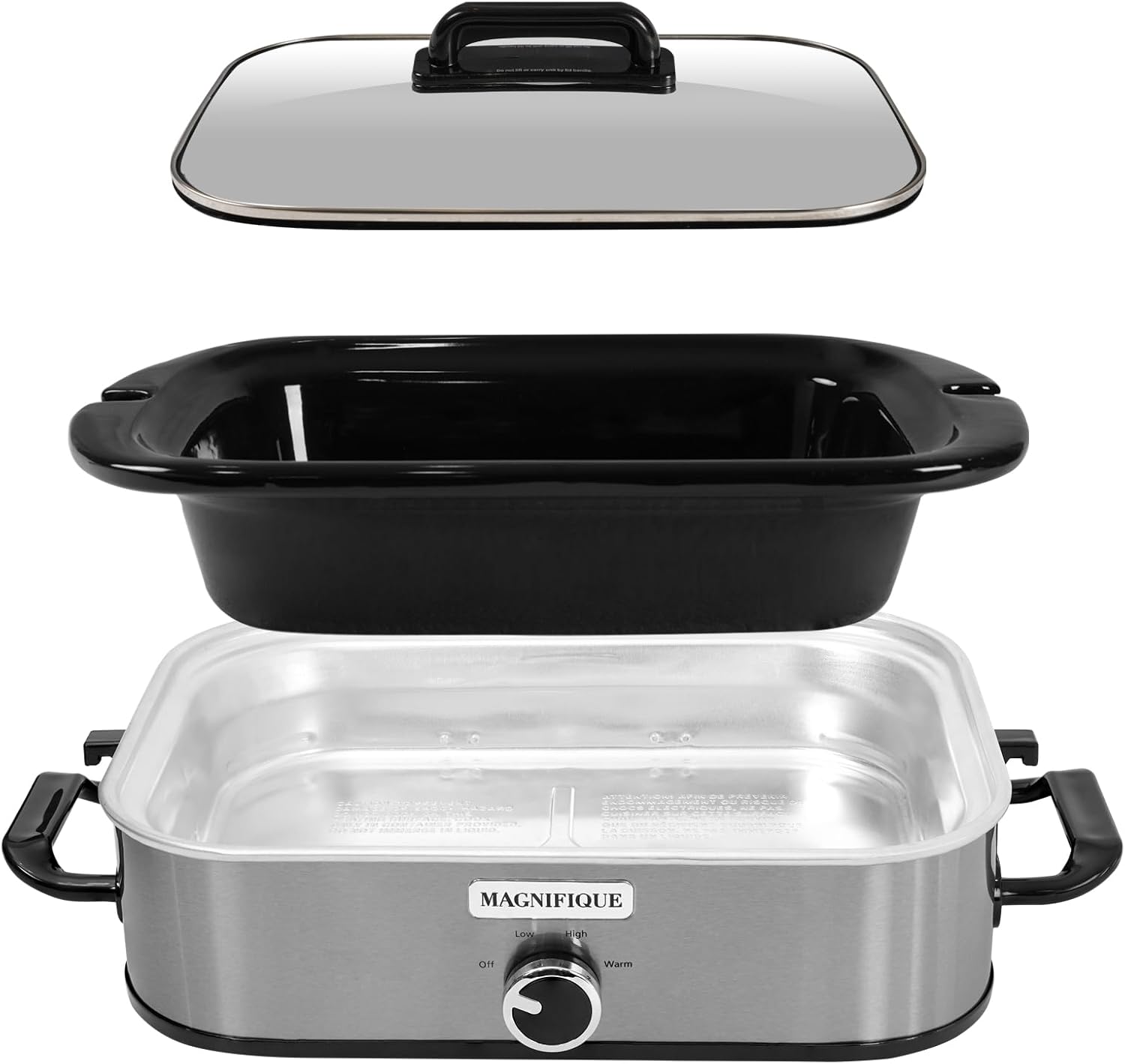 Magnifique 4-Quart Slow Cooker with Casserole Manual Warm Setting - Perfect Kitchen Small Appliance for Family Dinners, Dishwasher Safe Crock, Stainless Steel