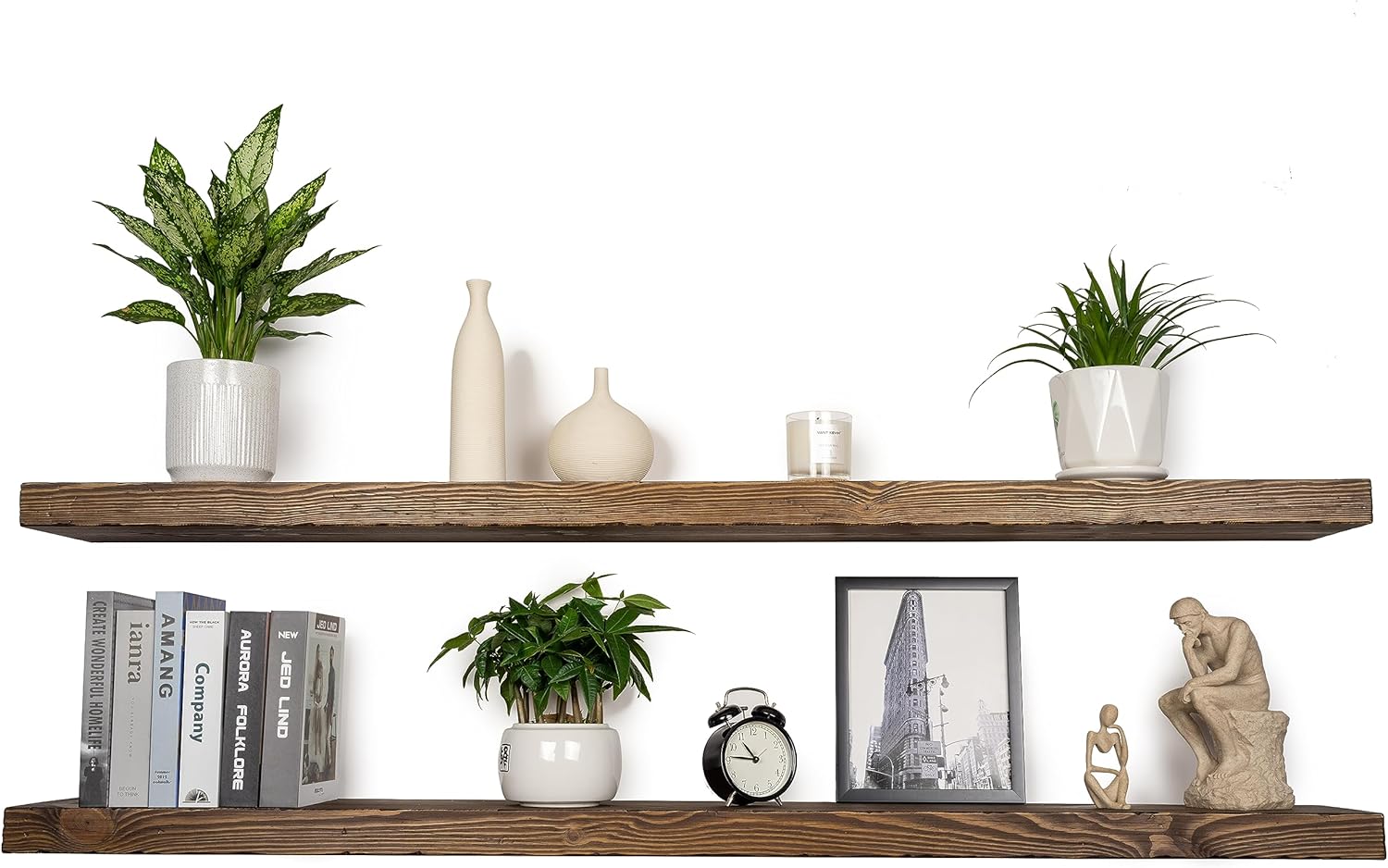 - Distressed Floating Shelves:Our distressed floating shelves are hand-hewn and made with love and passion. The distressed look is achieved by hand distressing with attention to small detail. Each shelf will have its own unique distressing and will have knots and imperfections to achieve a rustic look