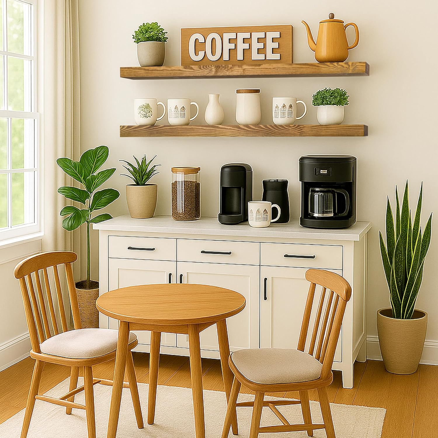- Easy Installation: Installing our floating shelf is a breeze. With user-friendly instructions and included mounting hardware, you'll have it securely hung on your wall in no time, adding both charm and organization to your space.