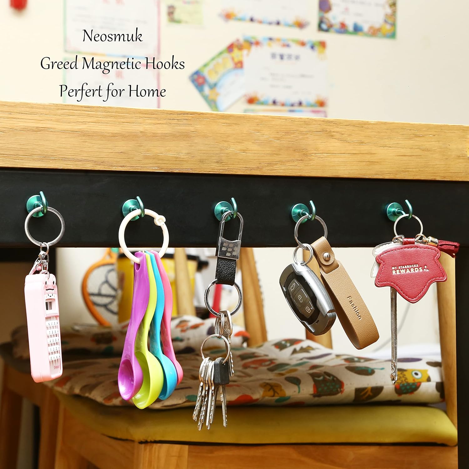 - ✔ VERSATILE USE- Neosmuk’s strong neodymium magnetic hooks were endowed with a strong capability for holding various items wherever there is iron or steel. This magnet hook is a perfect magnetic key holder. You can also hang your tools next to the toolbox with this magnetic hook. Our magnetic hooks are great for grill, pot, cup, utensils, and oven.