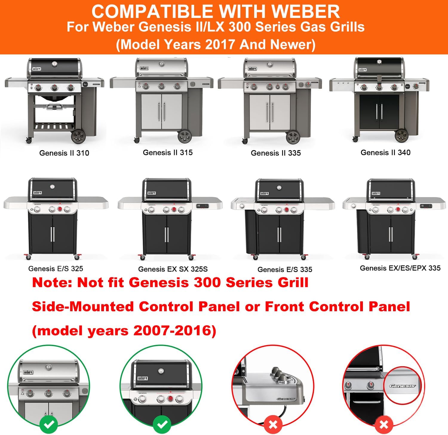 - 【Perfect for Weber GS4 Genesis II 300 Series】The griddle insert and grate are compatible with Weber Genesis II 300 series gas grills(2016 and newer), such as Genesis II E-310, Genesis II S-310, Genesis II E-315, Genesis II E-330 Genesis II E-335 Genesis II S-335 Genesis II S-345. Genesis II SE-310, Genesis II SE-335, Genesis II CE/SE-330, Genesis II LX E/S-340. Also Compatible with webber genesis ii CSE-315/CSS-315, Genesis ii CSS-335/CSE-335, Genesis ii LX CSS-340/CSE-340 gas grills.