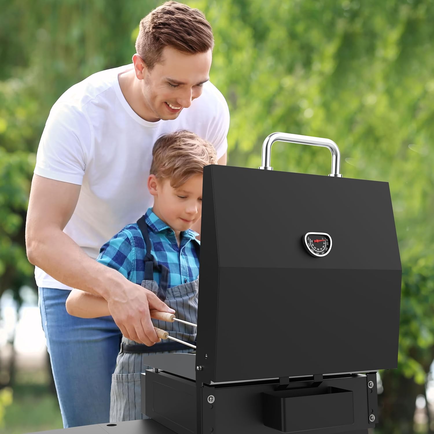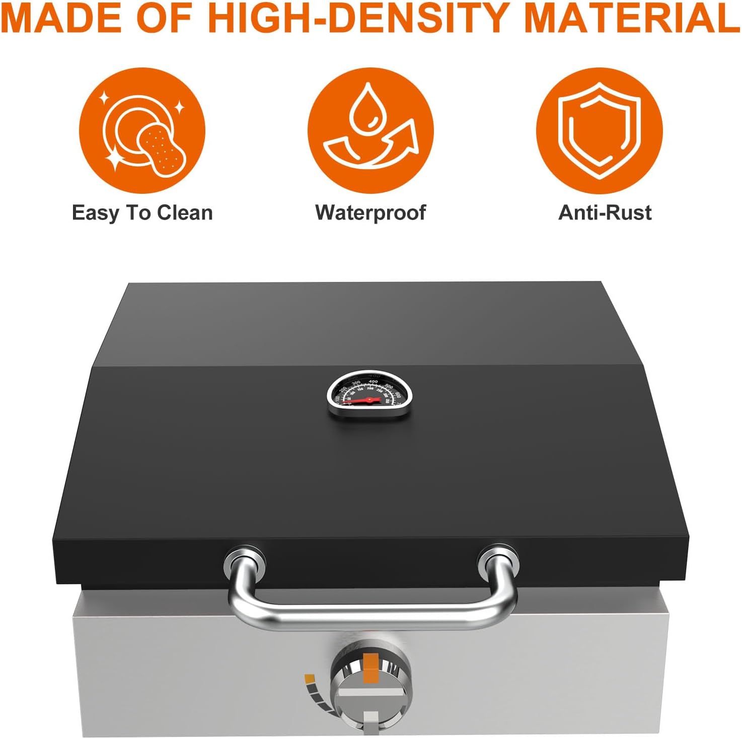 Hard Cover Hood with Temperature Gauge for Blackstone 17 inch Table Top Griddle, Hinged Lid for Blackstone 17" Front or Rear Grease Model, Black