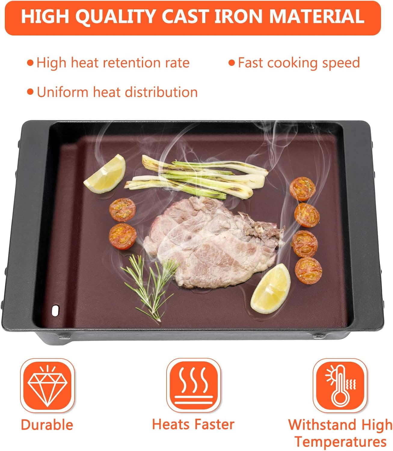 - 【Naturally Non-Stick with Proper Care】Maintain the non-stick surface by regularly seasoning the griddle (lightly oiling after each use). With proper care, this cast iron griddle ensures effortless cooking and easy food release, making your grilling experience smooth and enjoyable. Perfect for your 7658 Griddle or Weber Spirit 2 E310 Griddle