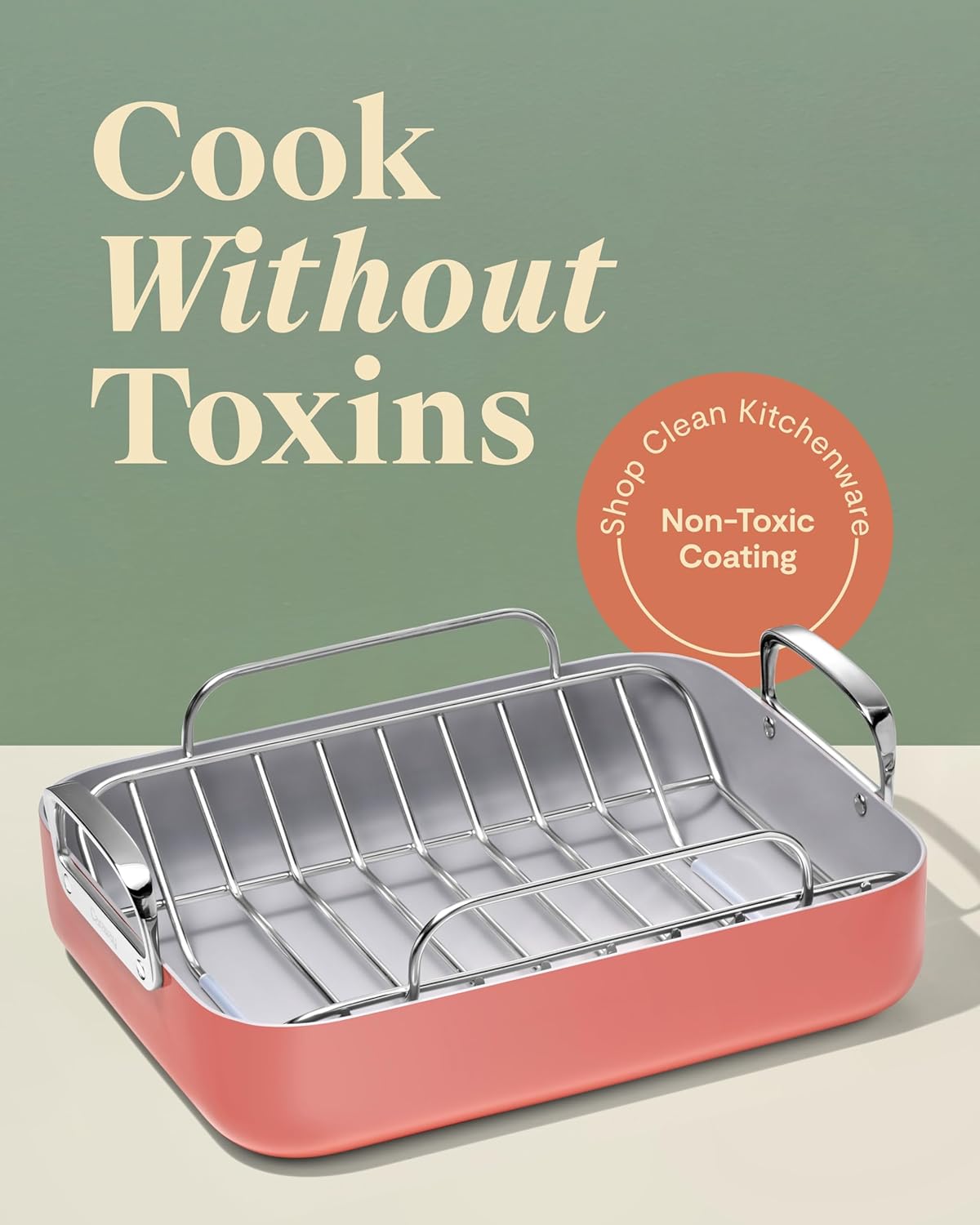 - MADE FOR BIG RECIPES: Caraway's 16x13" Roasting Pan and Rack set brings clean cooking to the forefront, ideal for main event recipes or Sunday dinner roasts.