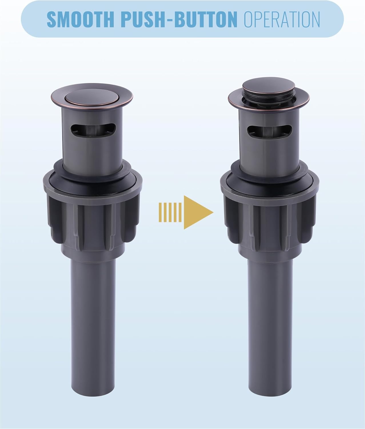 - 【Easy Operation】- Pop up drain stopper simply push the drain down to close and to seal, push again to open and to drain water. The pop up design only needs to press lightly, and the sink drain will quickly sprinkle water.
