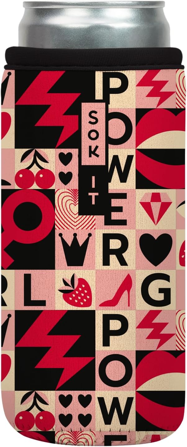 Sok It CanSok Sleeve for Beer & Soda Insulated Neoprene Cover (Girl Power, 12oz Slim Can Sleeve)