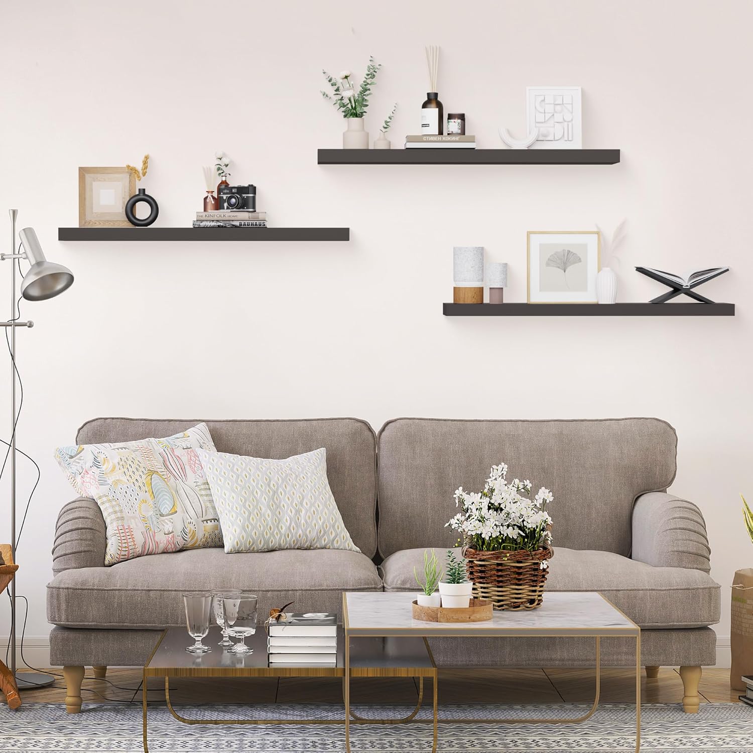 - AESTHETIC APPEAL: Designed to create a visually striking "floating" effect, the concealed mounting system enhances the aesthetic appeal of any room. These sleek and modern shelves not only serve a functional purpose but also add a touch of elegance to your space.