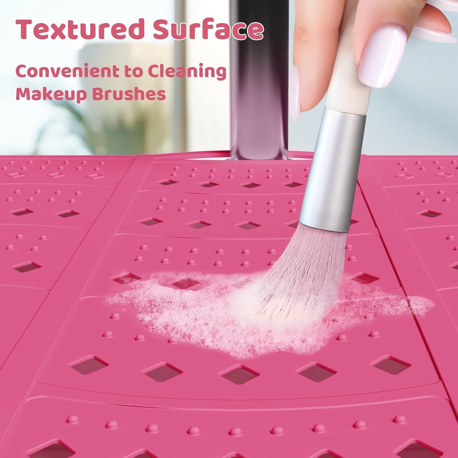 - High Quality: Crafted from high-quality silicone, this sink cover heat resistant up to 450 degrees Fahrenheit, safely place hot styling tools such as curling irons, hairdryers, or straighteners on its surface. And it with raised particle on the surface, convenient for you to clean your makeup brush.